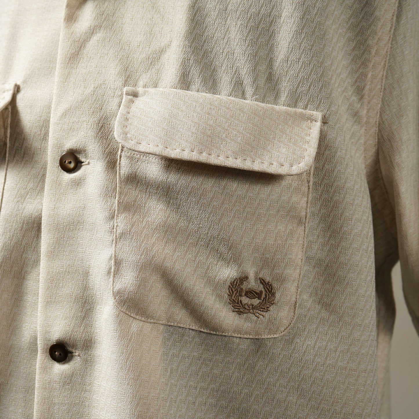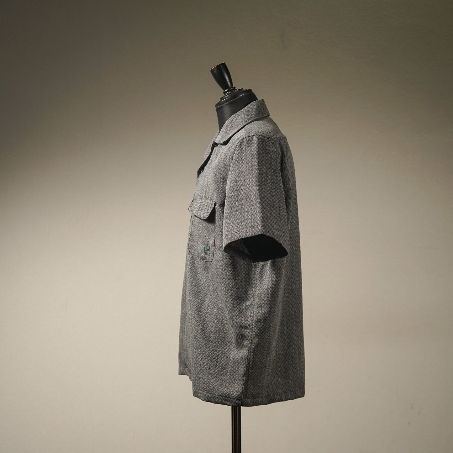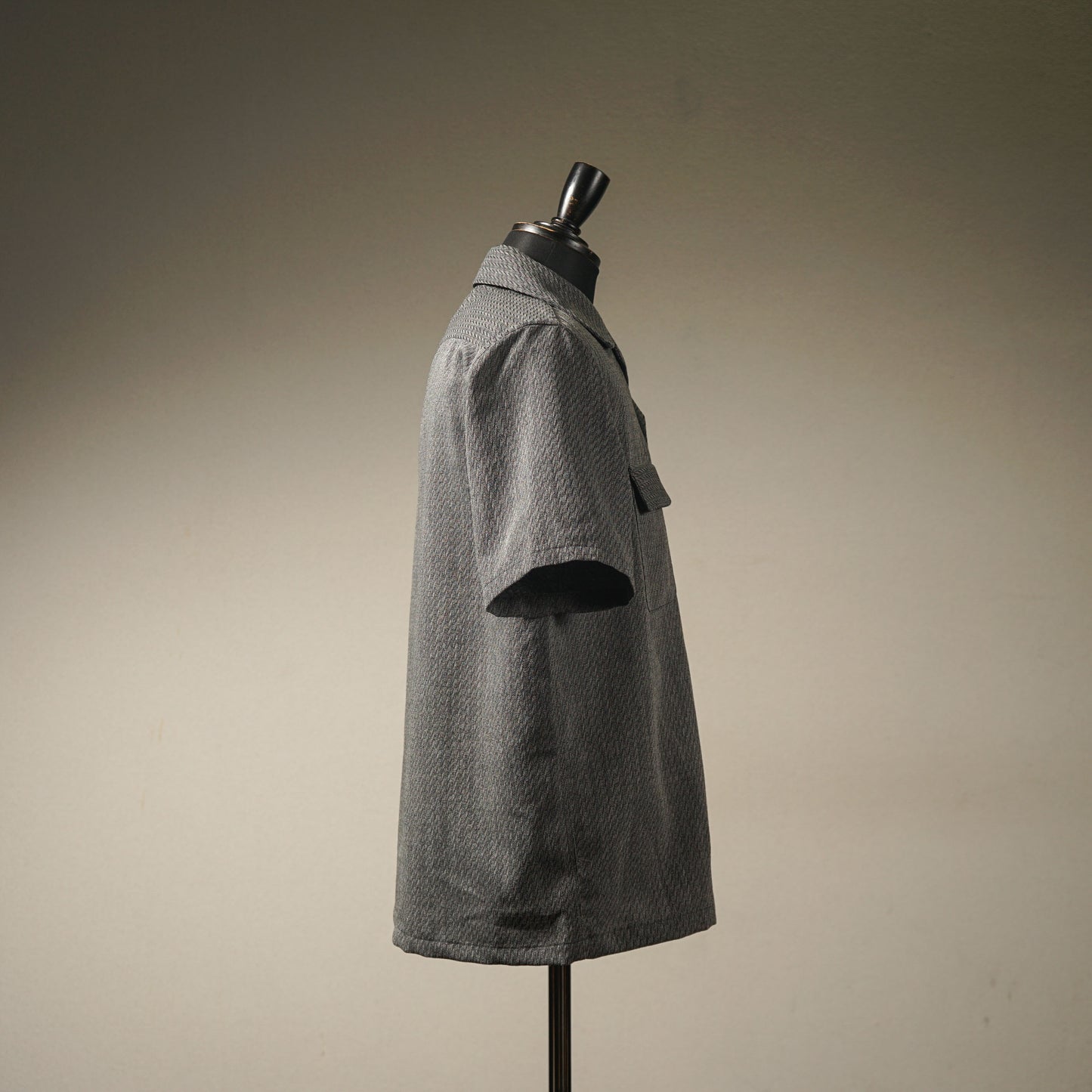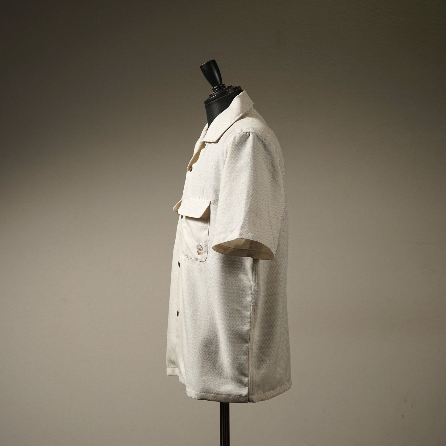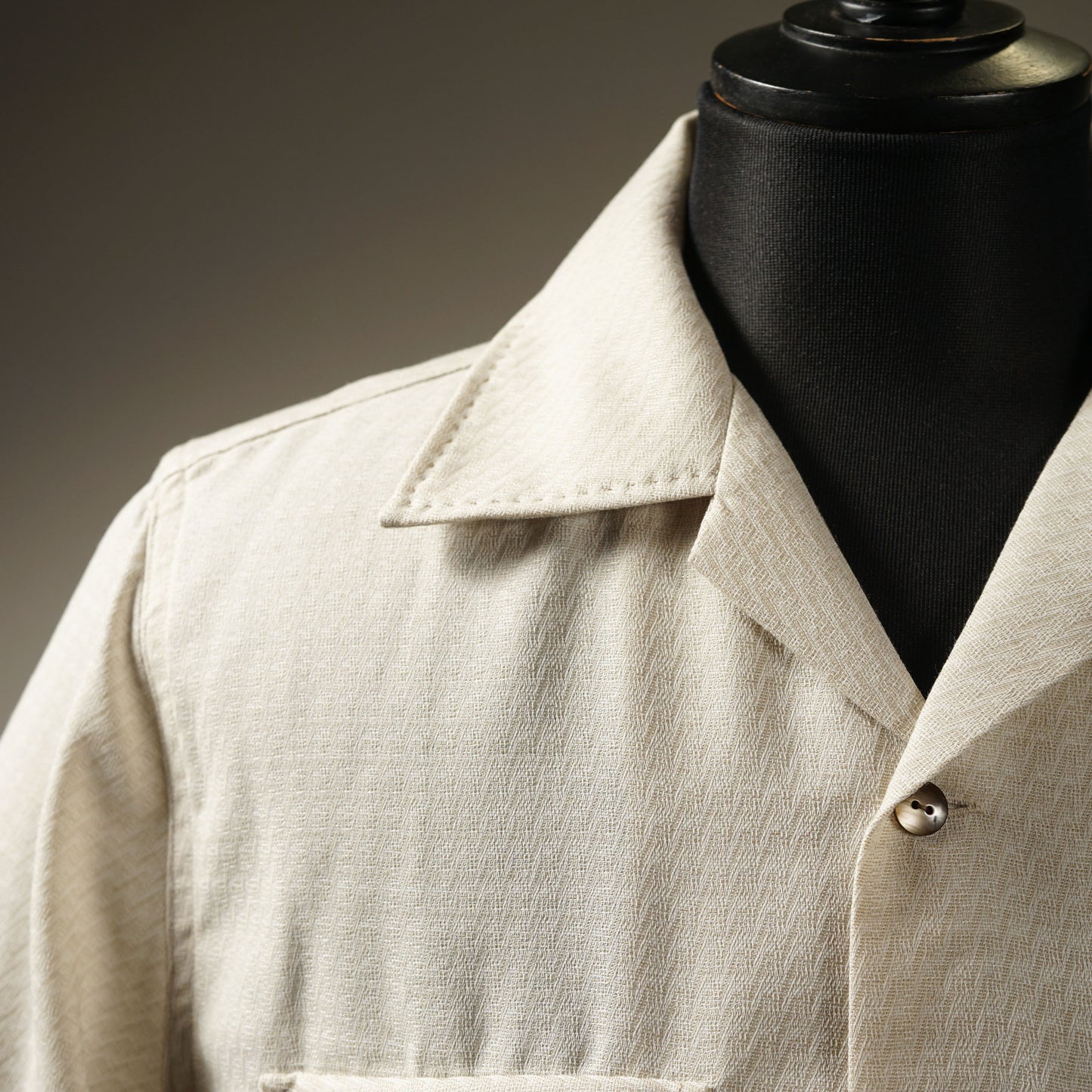フラップ付きの左ポケットにさりげなく施された刺繍がポイントのオープンカラーシャツ。