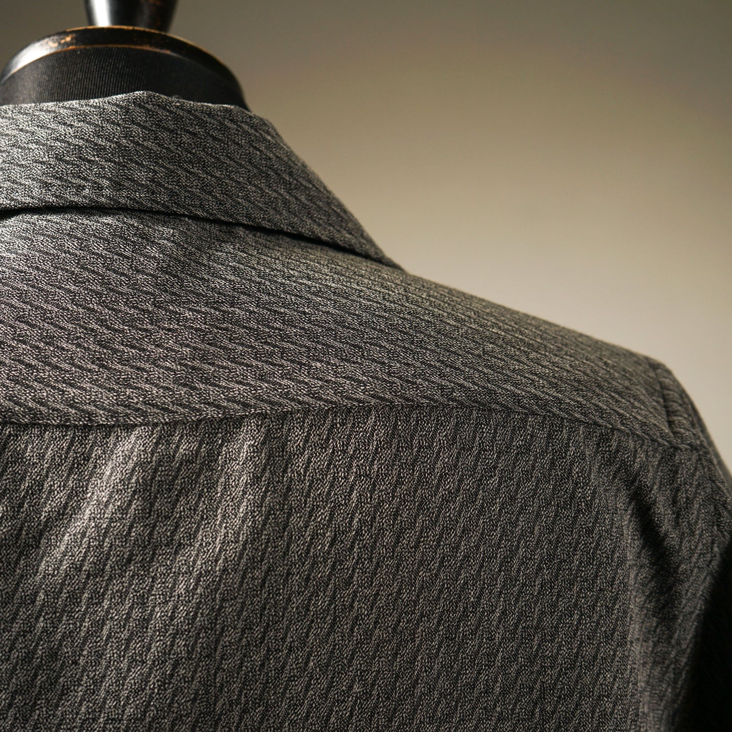 ドライタッチな質感と独特な凹凸感を持ち、通気性も良くサラッと着用いただけます。