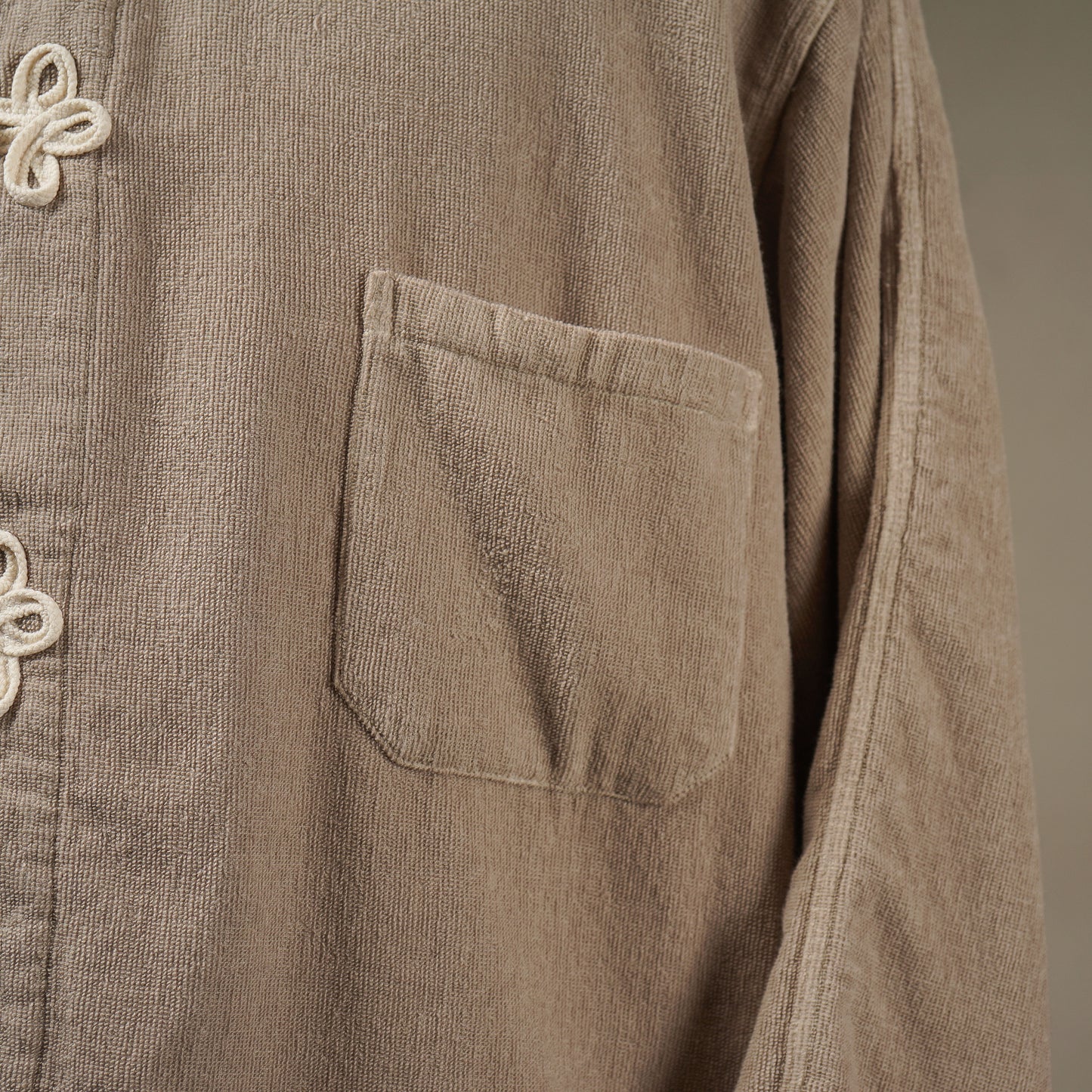 1930~1940'sのU.S.MILITARYスリーピングシャツをベースに、世界中を優雅に旅する旅人が着用するリラックスウェアをイメージしたデザイン、上質な今治パイルを贅沢に使用しています。