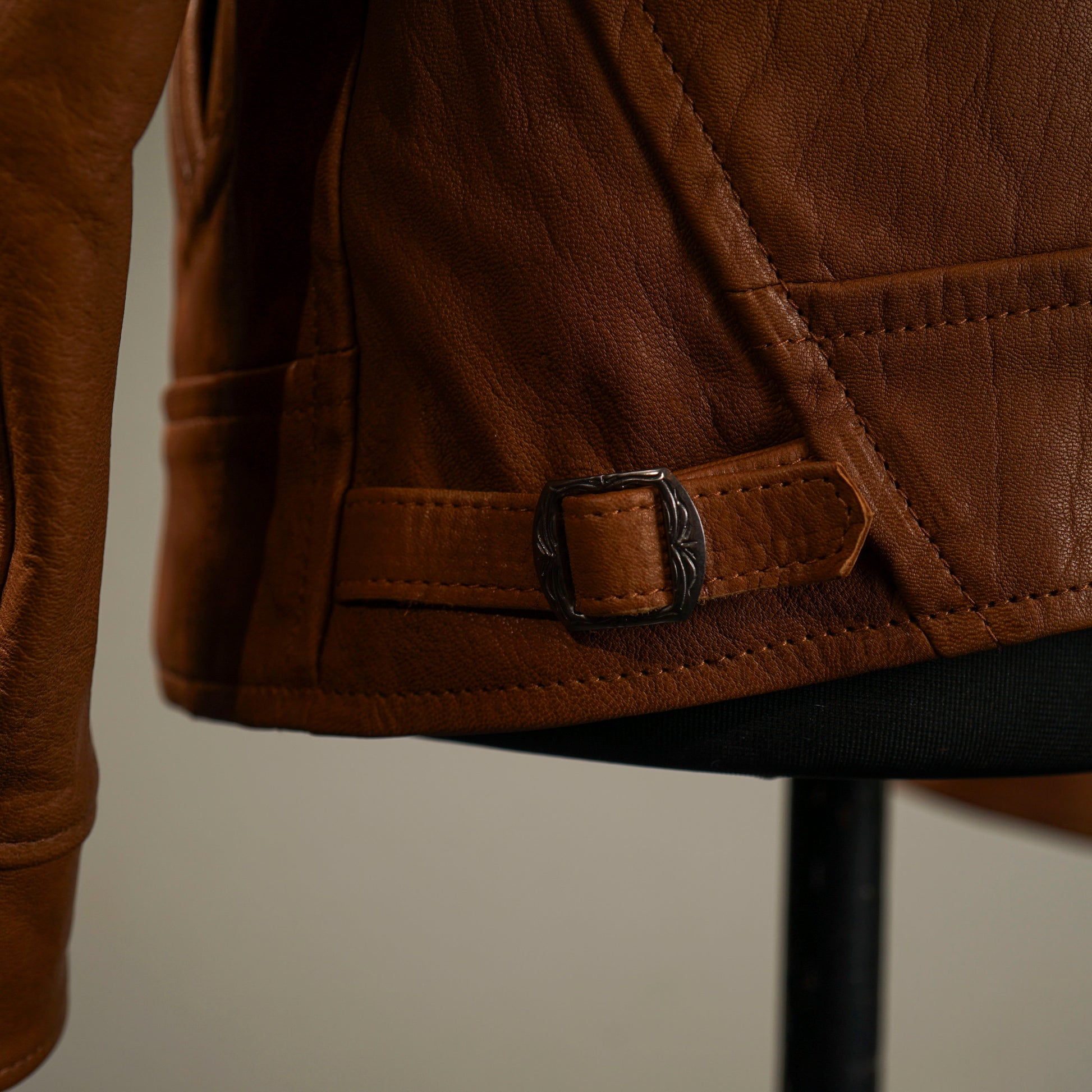 エゾ鹿革は、強さと柔らかさが魅力で、使うほどに風合いが増し体に馴染みます。軽く通気性が良く、植物タンニン鞣しによる独特の光沢やソフトなシボ感が特徴です。経年変化で深まる色艶も楽しめます。