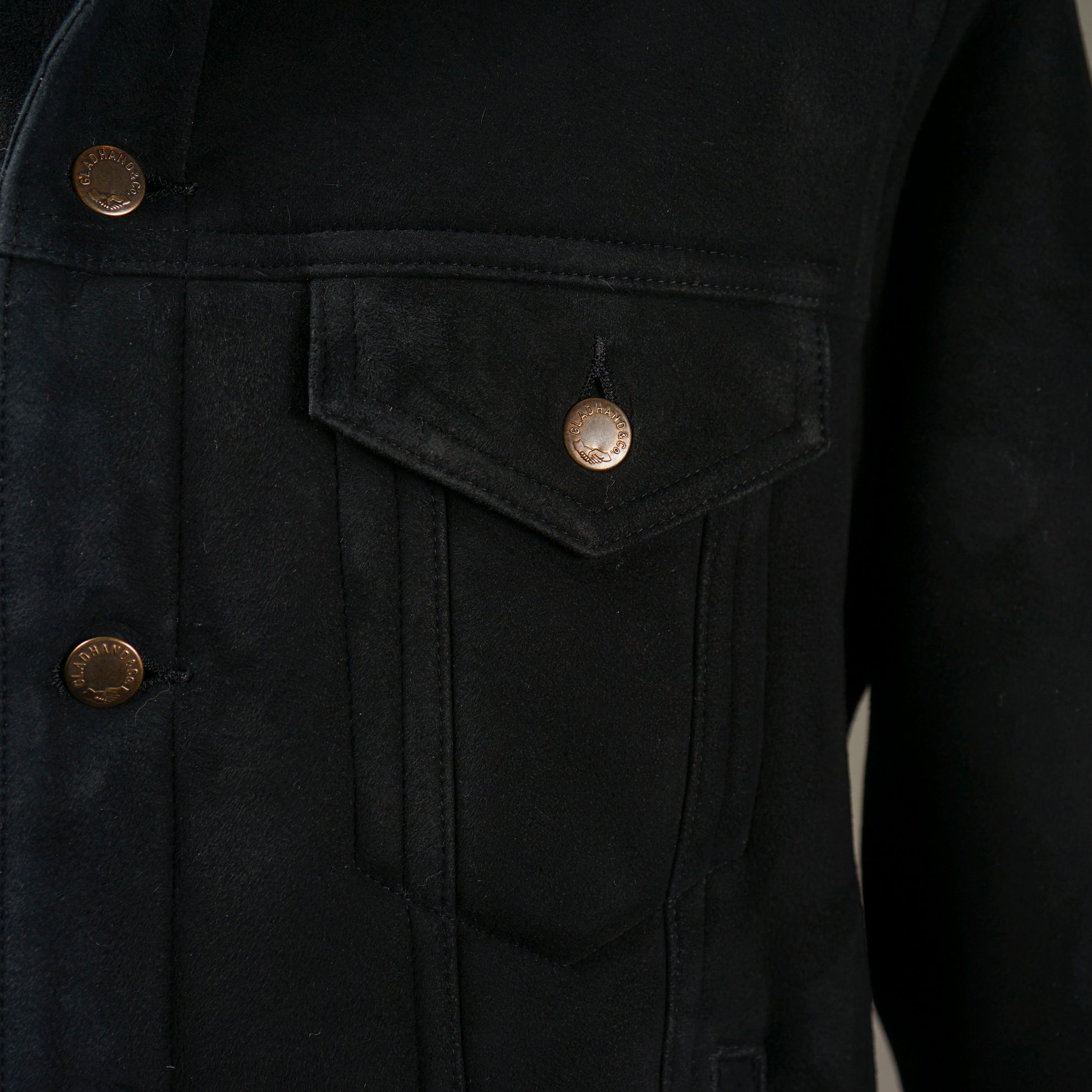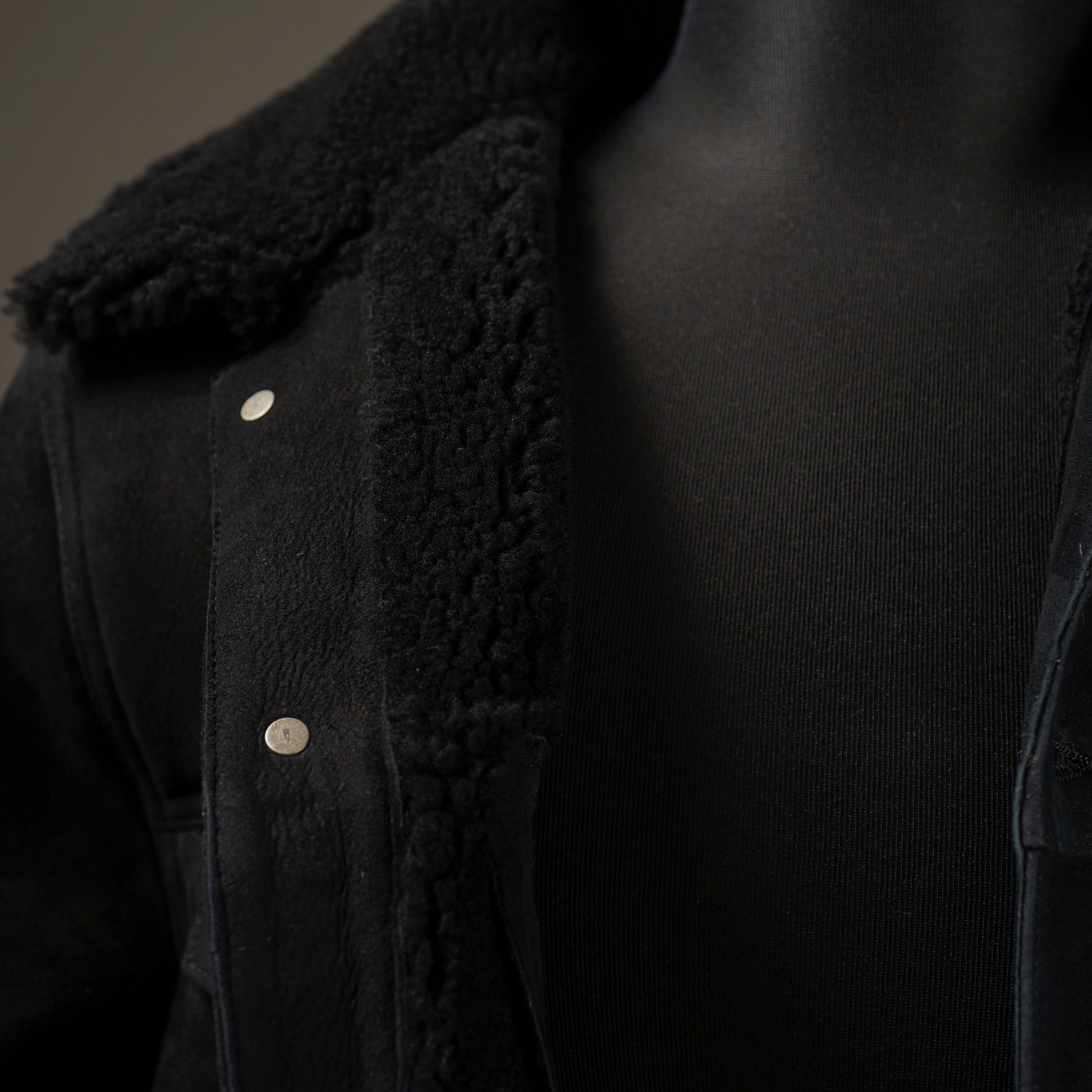 時代に左右されないスタイルのトラッカージャケットをベースに、贅沢にムートンで製作したジャケット。