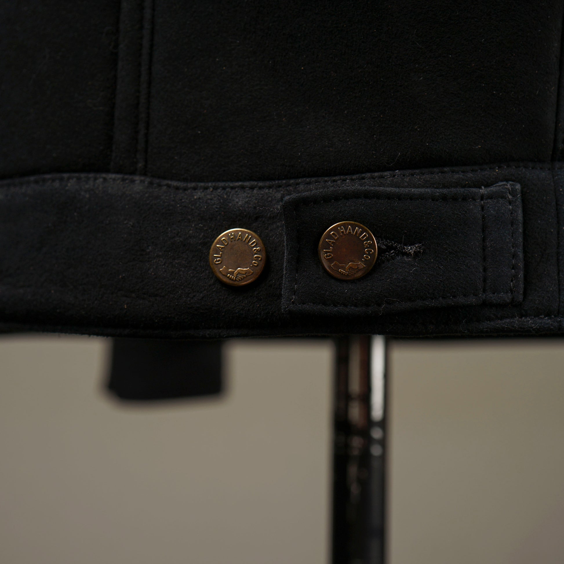 国内工場にてムートンの縫い代をしっかりと抑えた綺麗な縫製で仕上げています。 ムートンの毛を襟、身頃、袖裏と部分ごとに異なる毛の長さにカットし、着心地の良さも考慮して製作しました。ヴィンテージでは珍しいロング丈のトラッカージャケットのサイズ感を参考に、少し余裕を持たせたゆったりとしたサイズ感となっております。 コーディネートを選ばずに羽織れる一着となっています