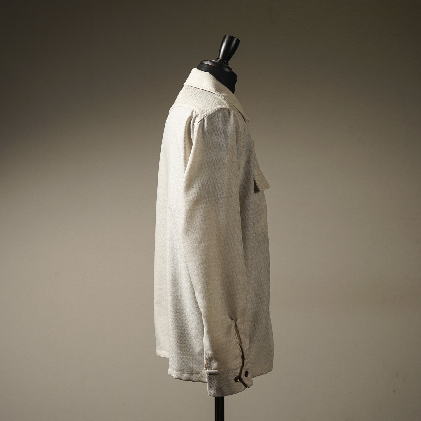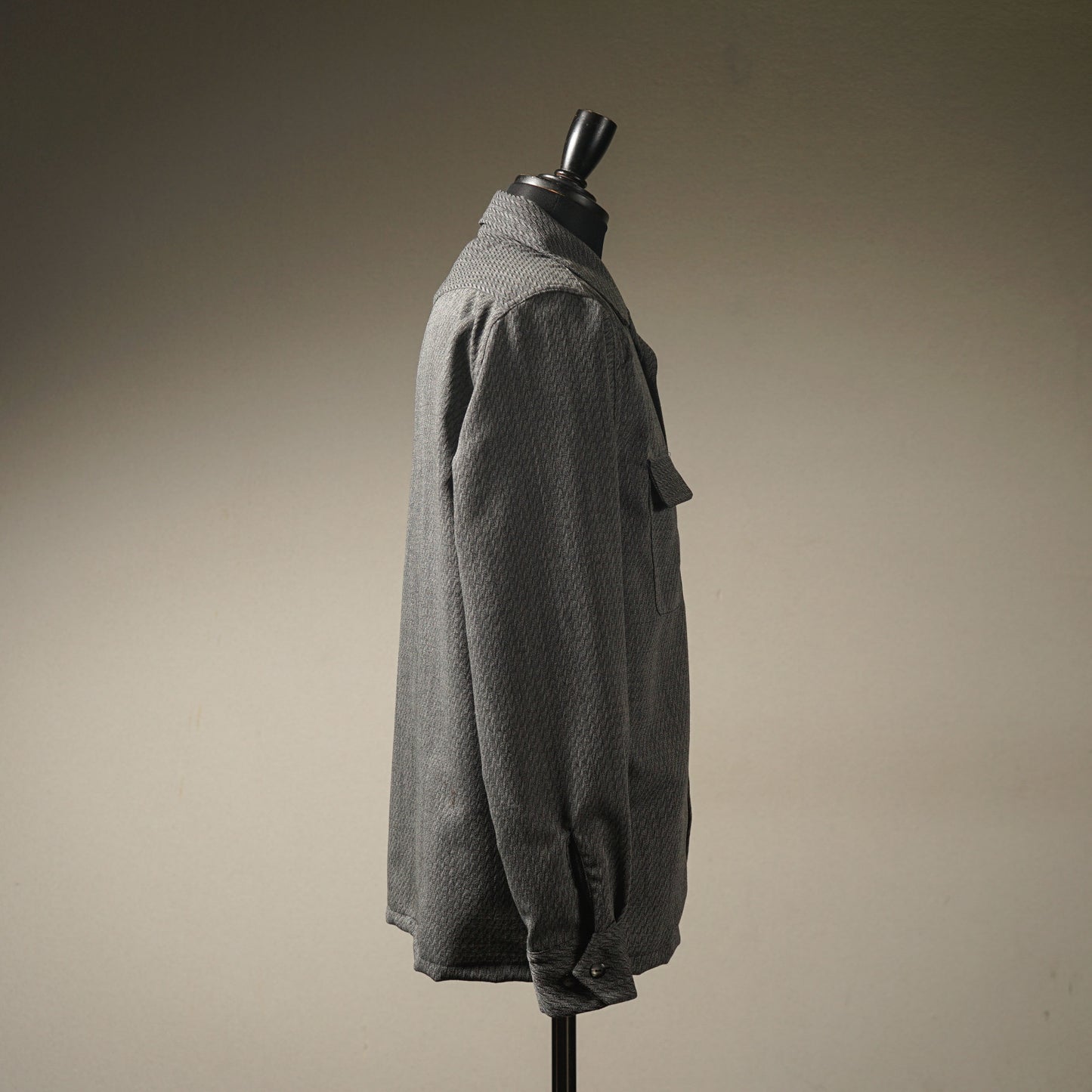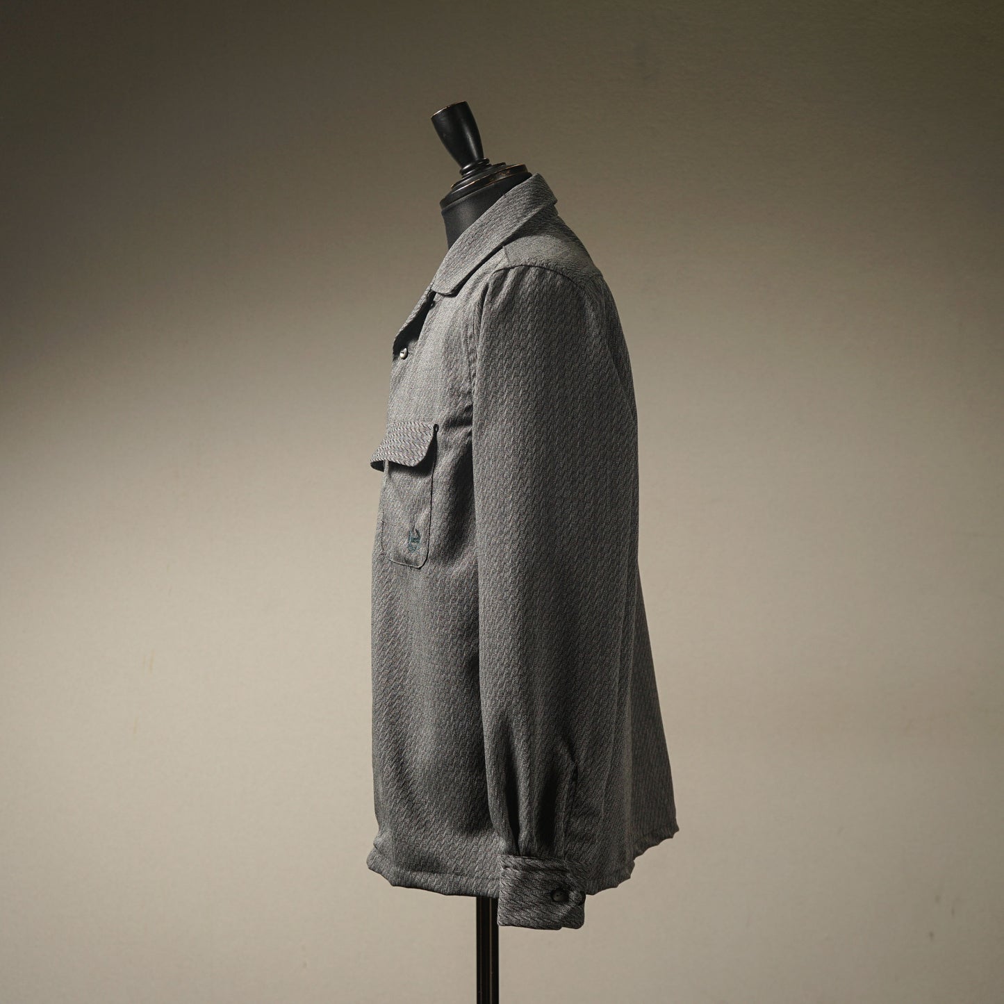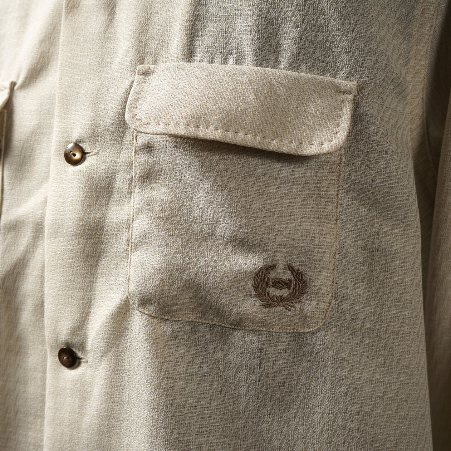フラップ付きの左ポケットにさりげなく施された刺繍がポイントのオープンカラーシャツ。