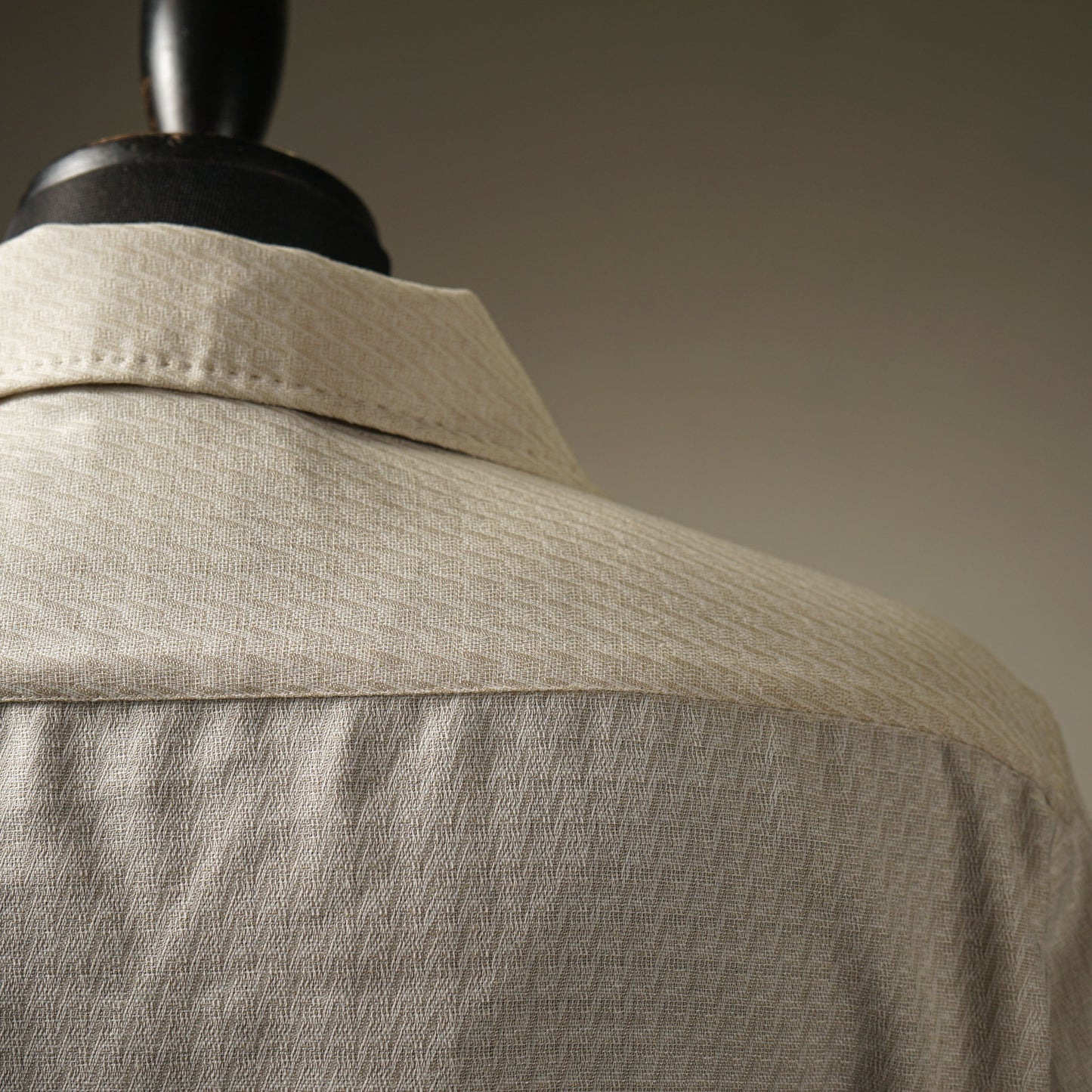 ドライタッチな質感と独特な凹凸感を持ち、通気性も良くサラッと着用いただけます。