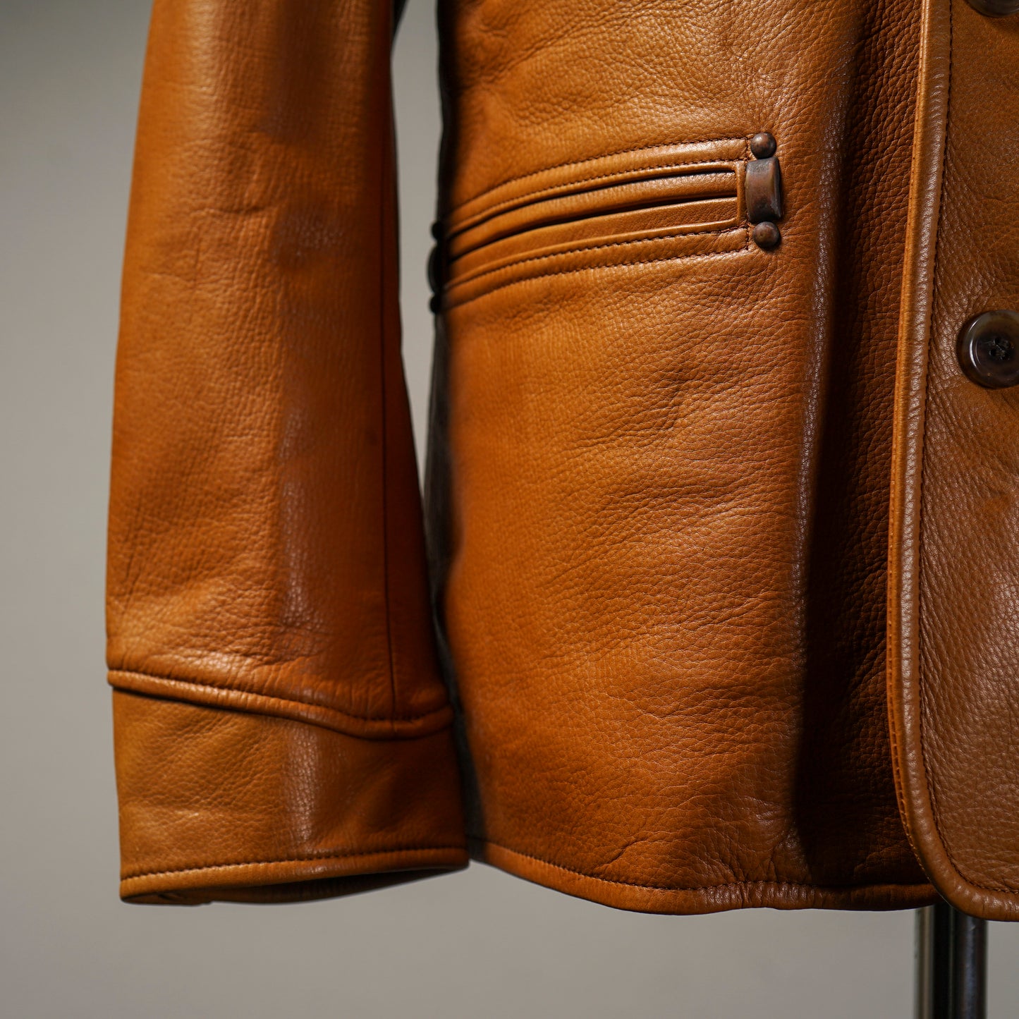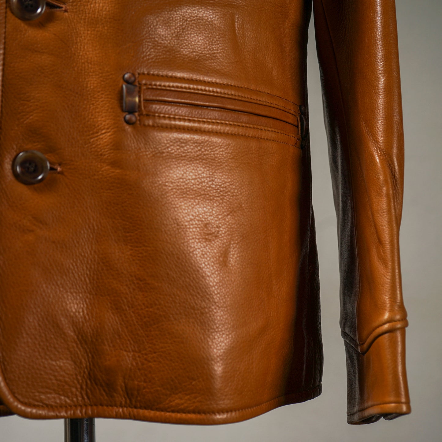 U.S.Aテキサス州産のステアをスレやキズを染料で隠すことなく、ドラムダイトで自然に仕上げた水染めの革。