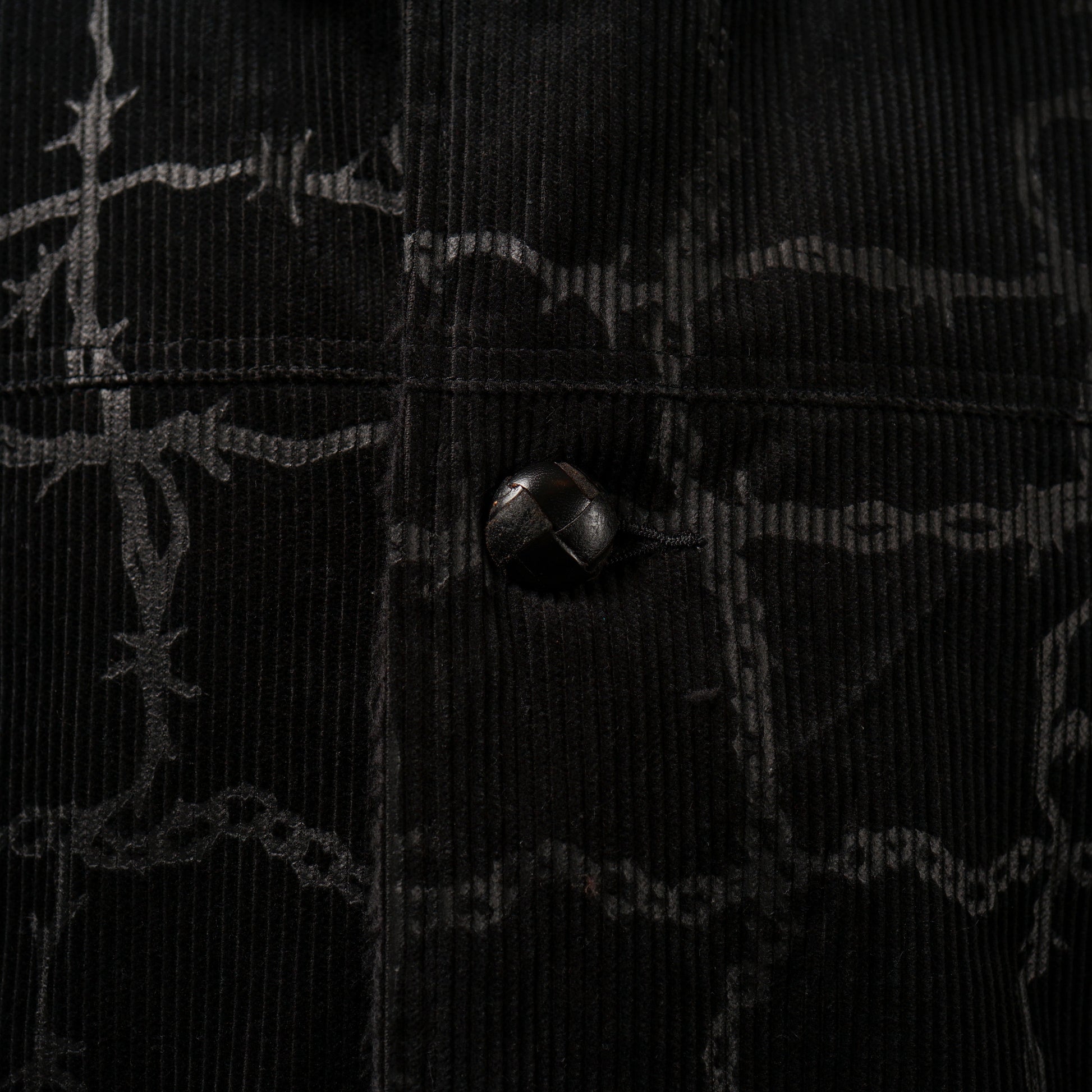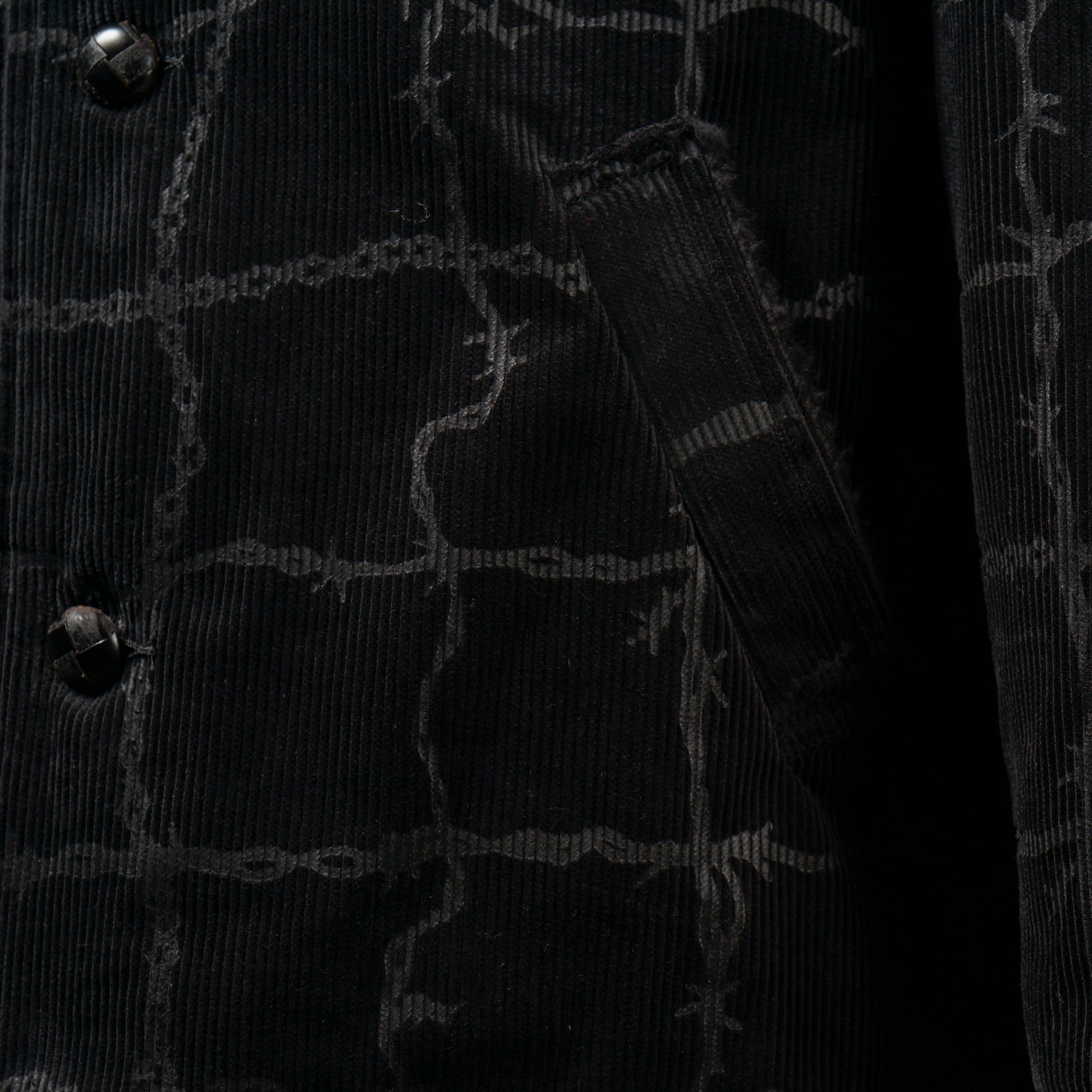 静岡県遠州で、膨らみを持たせながら織りあげたコール天に、特殊なプリント技法を用いエンボスのような立体感の柄を表現しつつ、生地の素材感は損なわない技法で仕上げました。