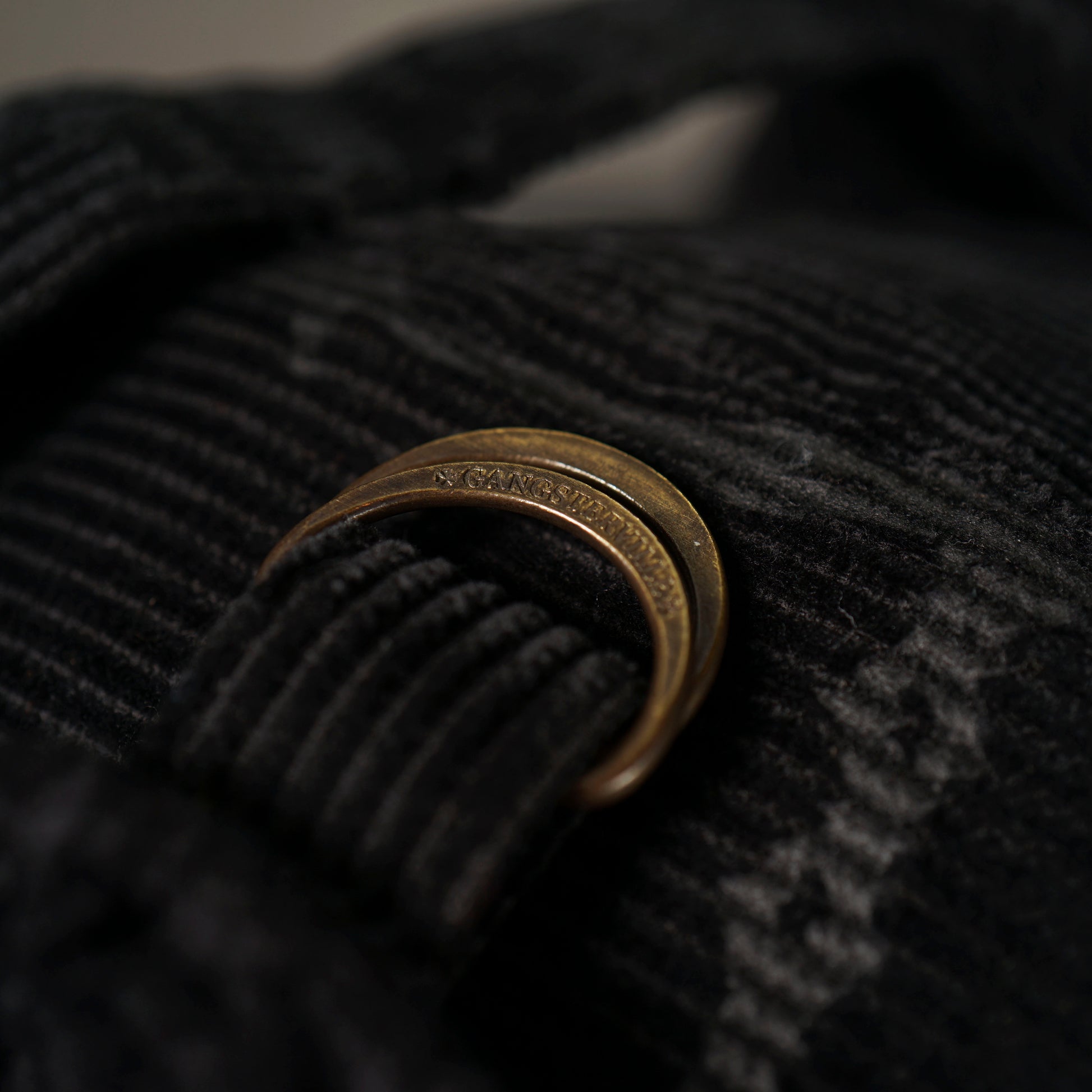 表地のオリジナルコール天には、かつて反逆者やアウトサイダーが好んで彫ったヴィンテージのチェーンや有刺鉄線のタトゥーデザインが全面に施され、アンダーグランドなモチーフを落とし込みながらもどこか上品さを兼ね備えたアイテム。