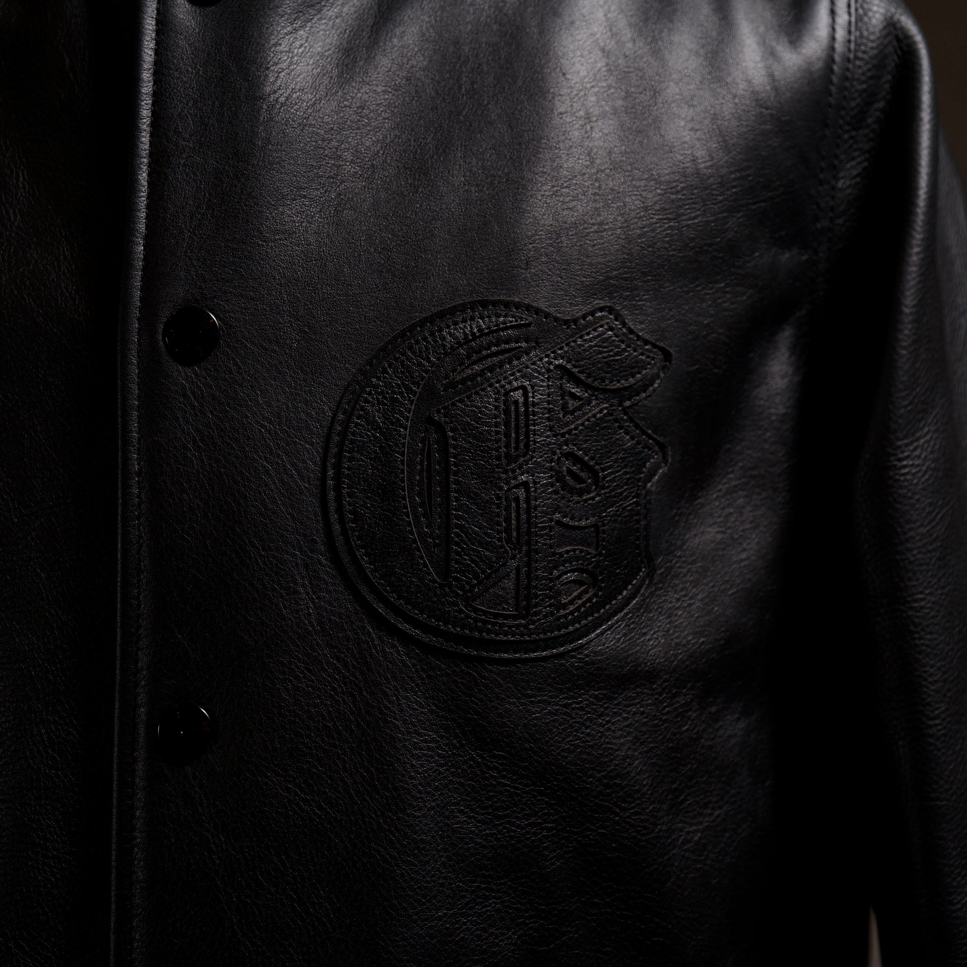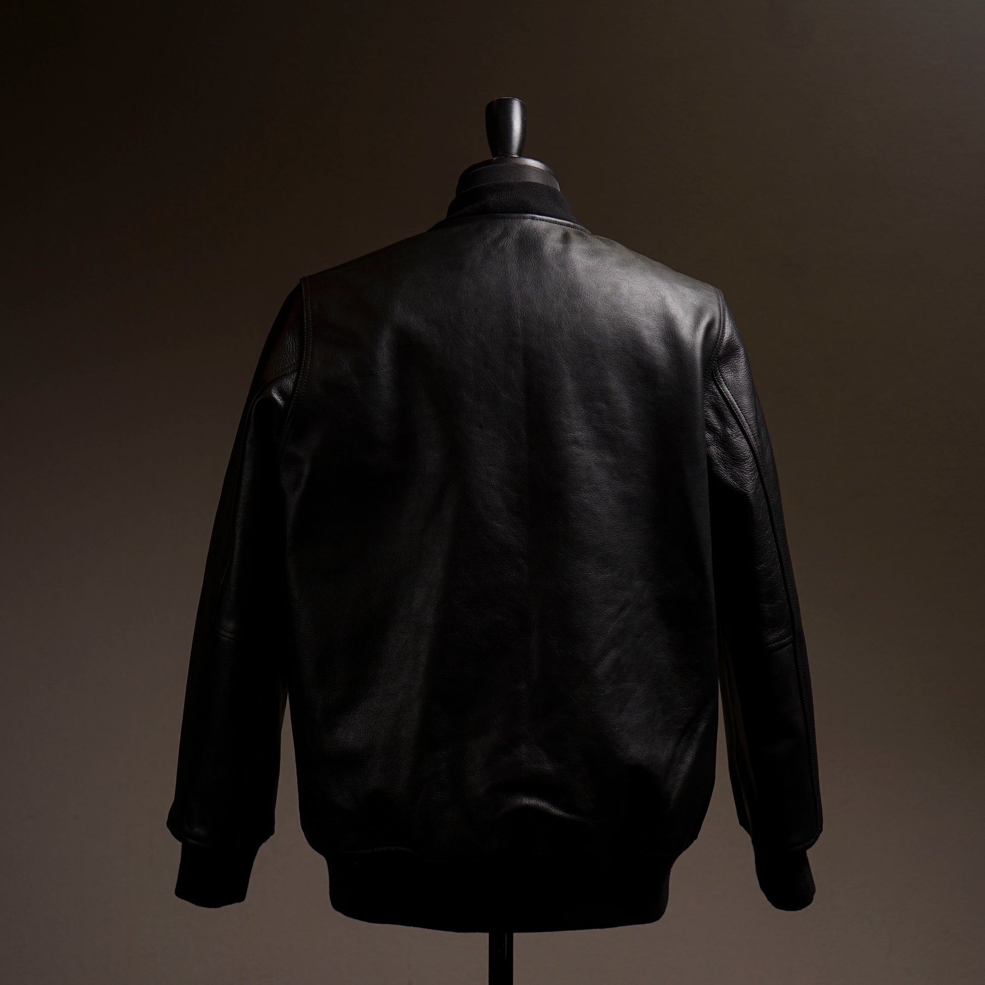 シュリンク加工のシボ感と顔料仕上げならではの発色の良さが特徴のレザーで仕上げたオールレザーのスタジャンです。