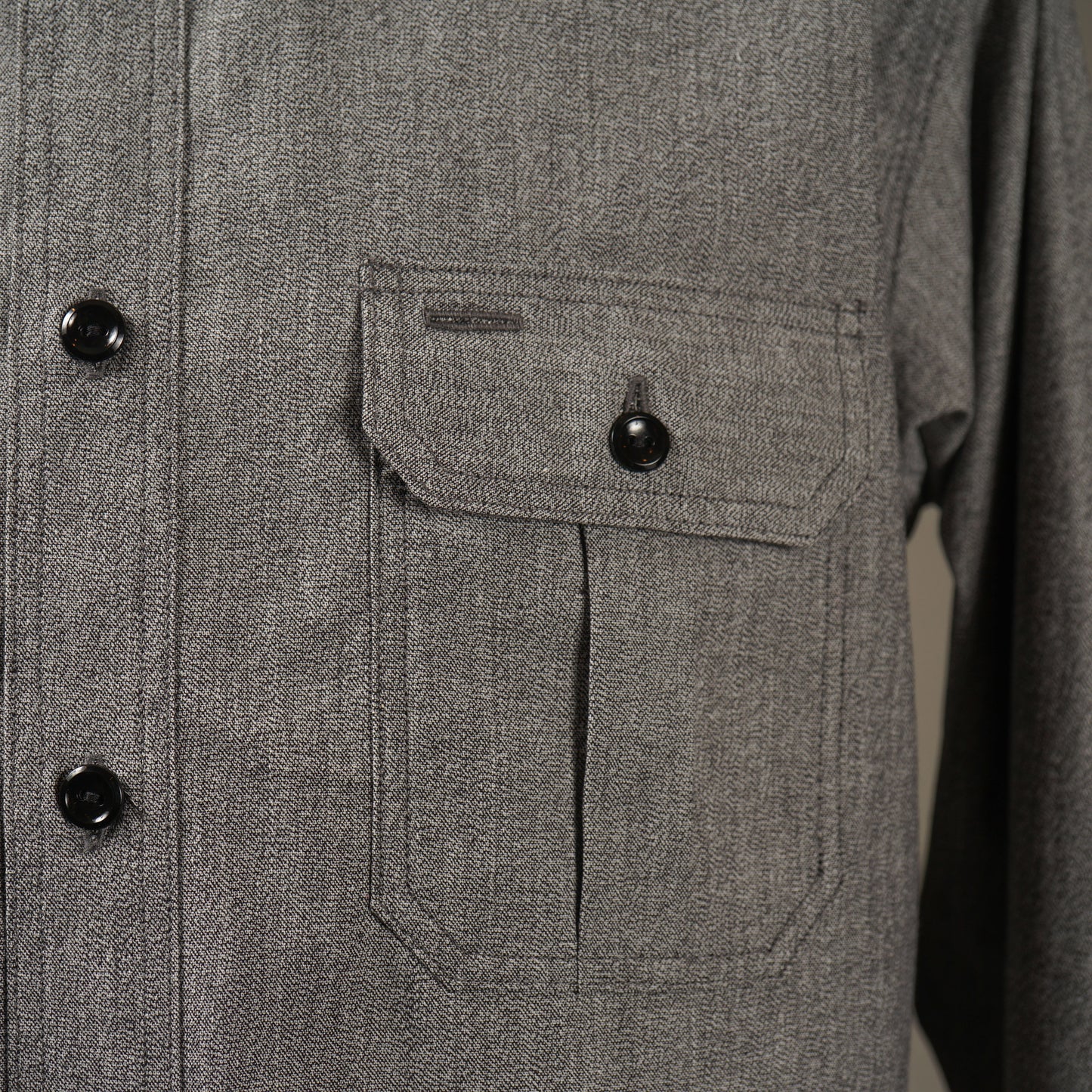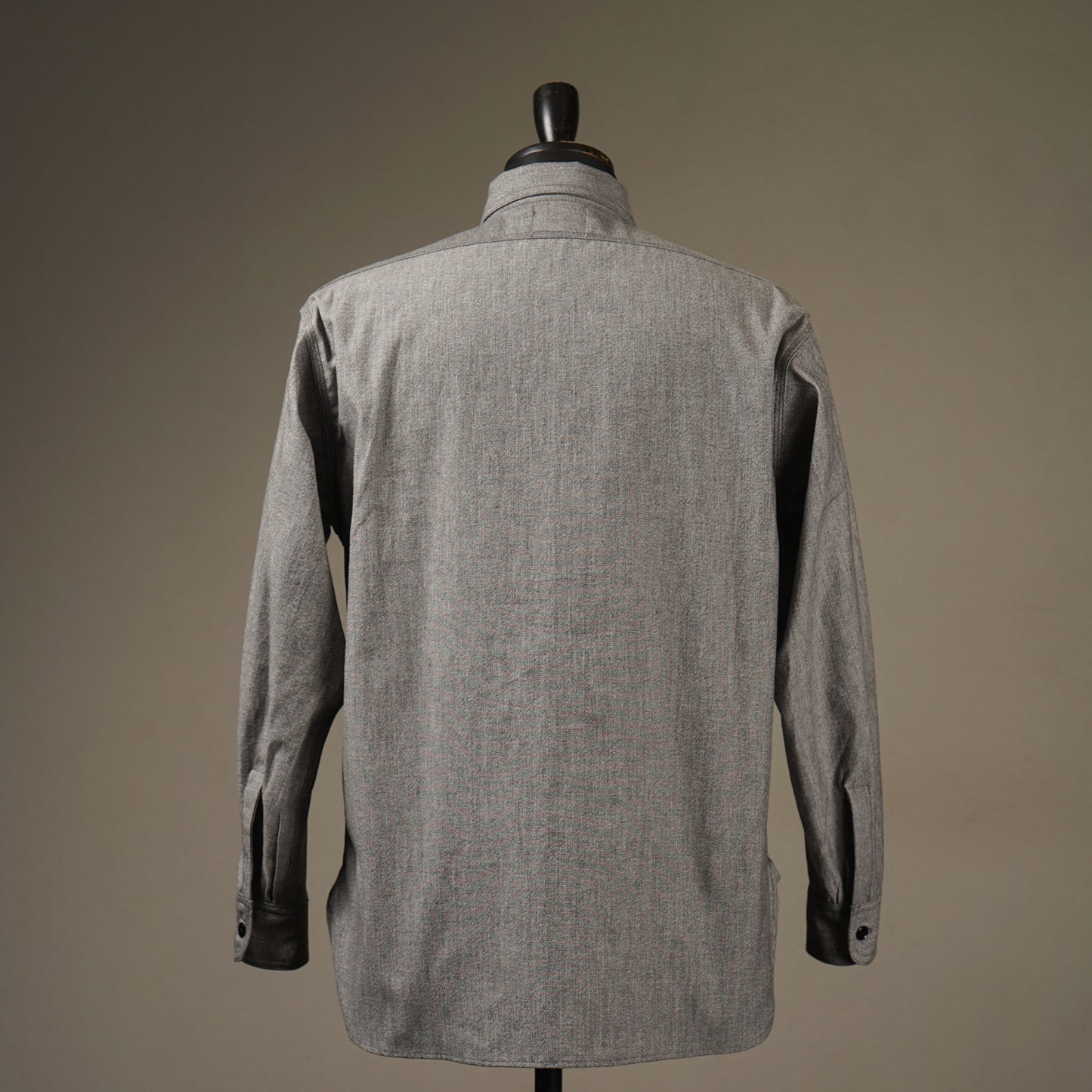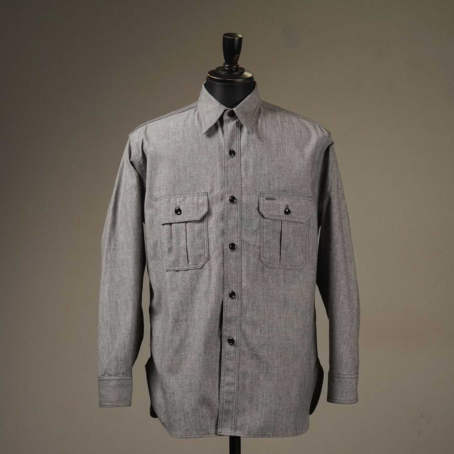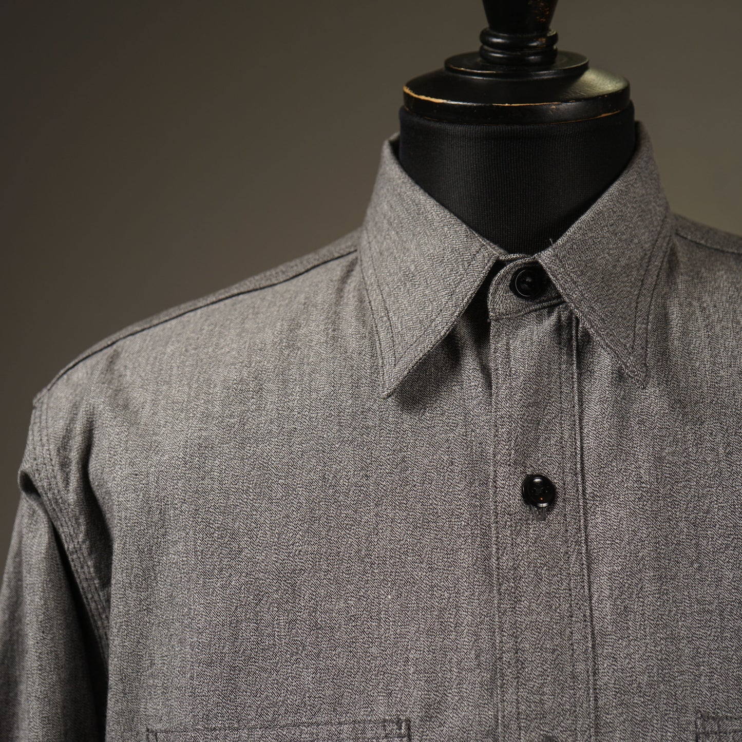 50年代のWORK SHIRTをベースにデザイン ディテール 3本針巻き縫い縫製、裾脇のガゼットなどのワークシャツならではの仕様が特徴。縫製は全て綿糸を使用し、岡山で生地から縫製、加工まで行ったワークシャツ。