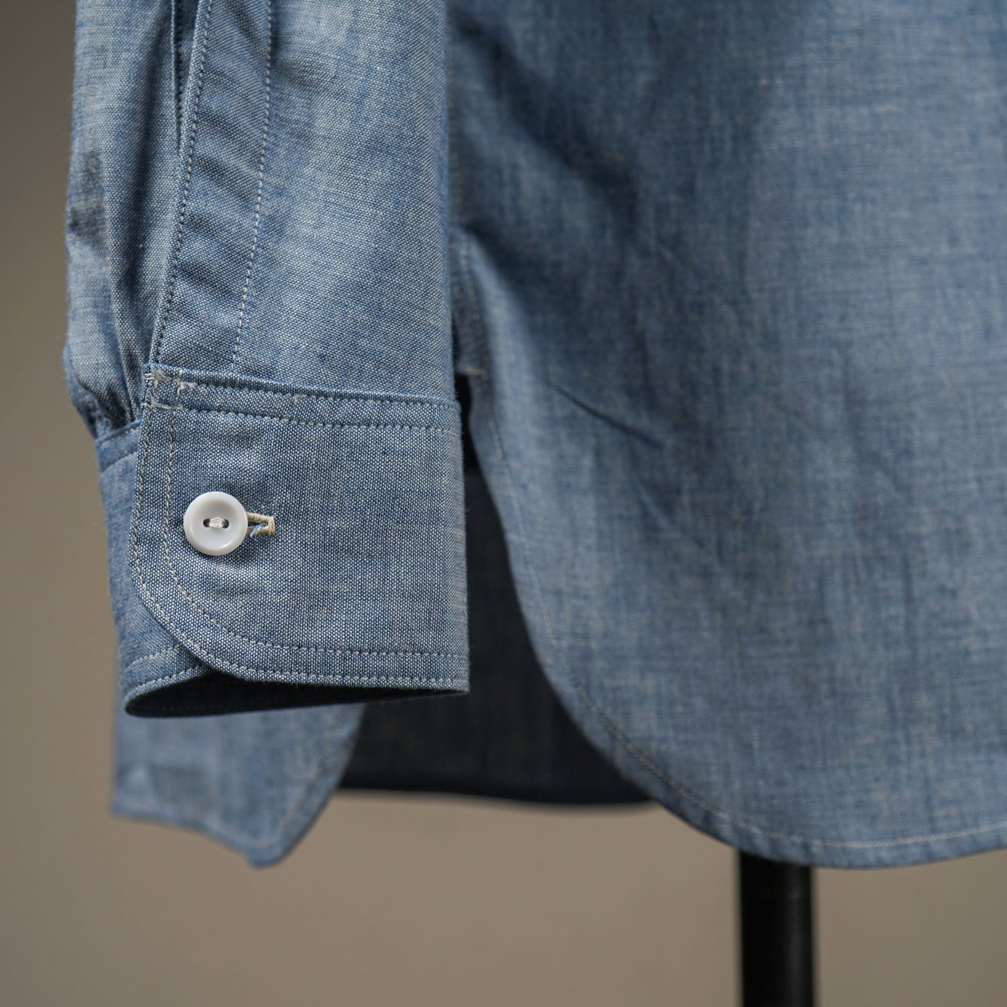 半世紀以上前に作られたシャトル織機を使用して、糸にテンションをかけずに低速で織り上げる事でナチュラルな風合いに仕上げたシャンブレー素材。