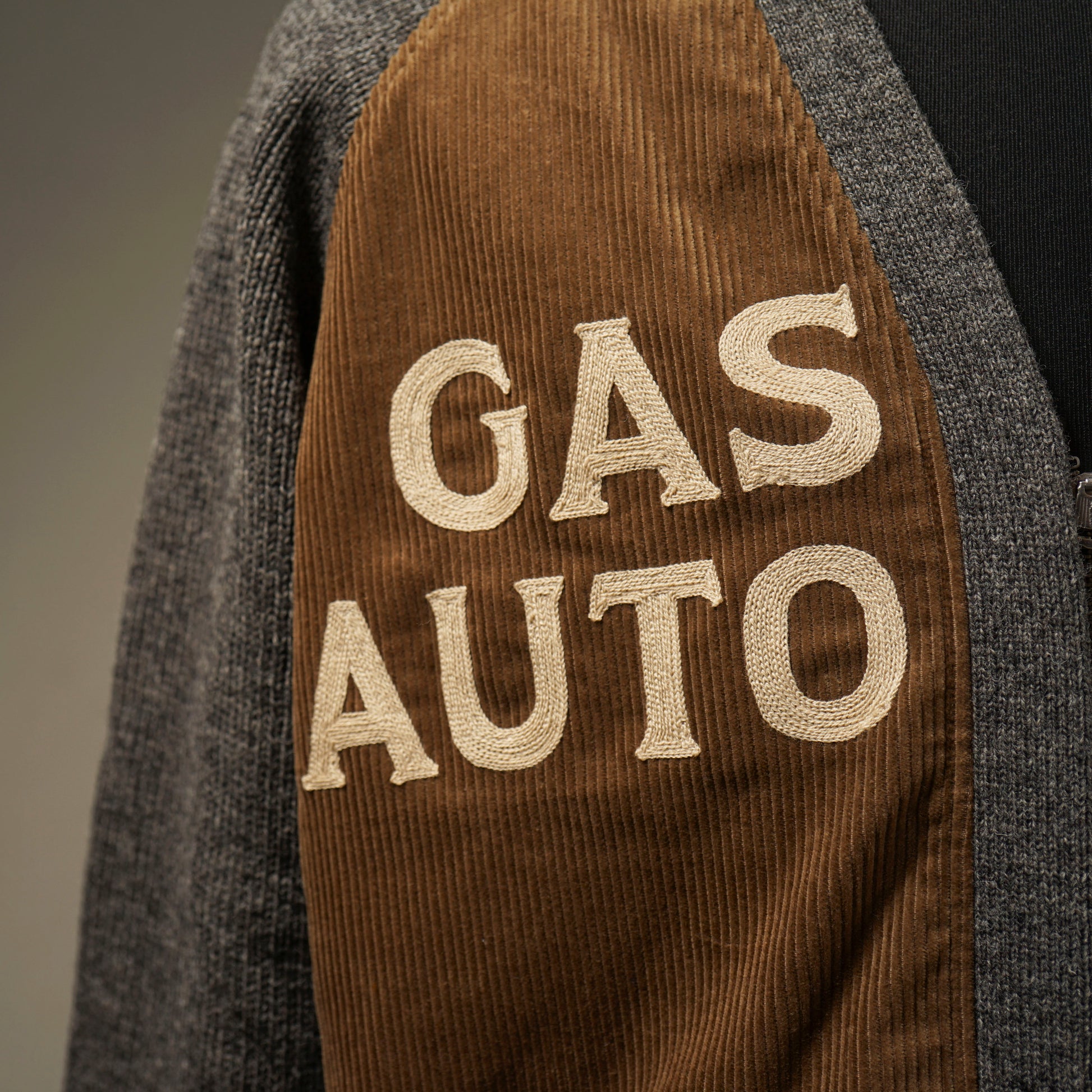 1930年代から1940年代頃のジップセーターをベースにしたやや余裕を持たせたレギュラーフィットのコール天とシェットランドのコンビネーション仕様のジッパードカーディガン。
