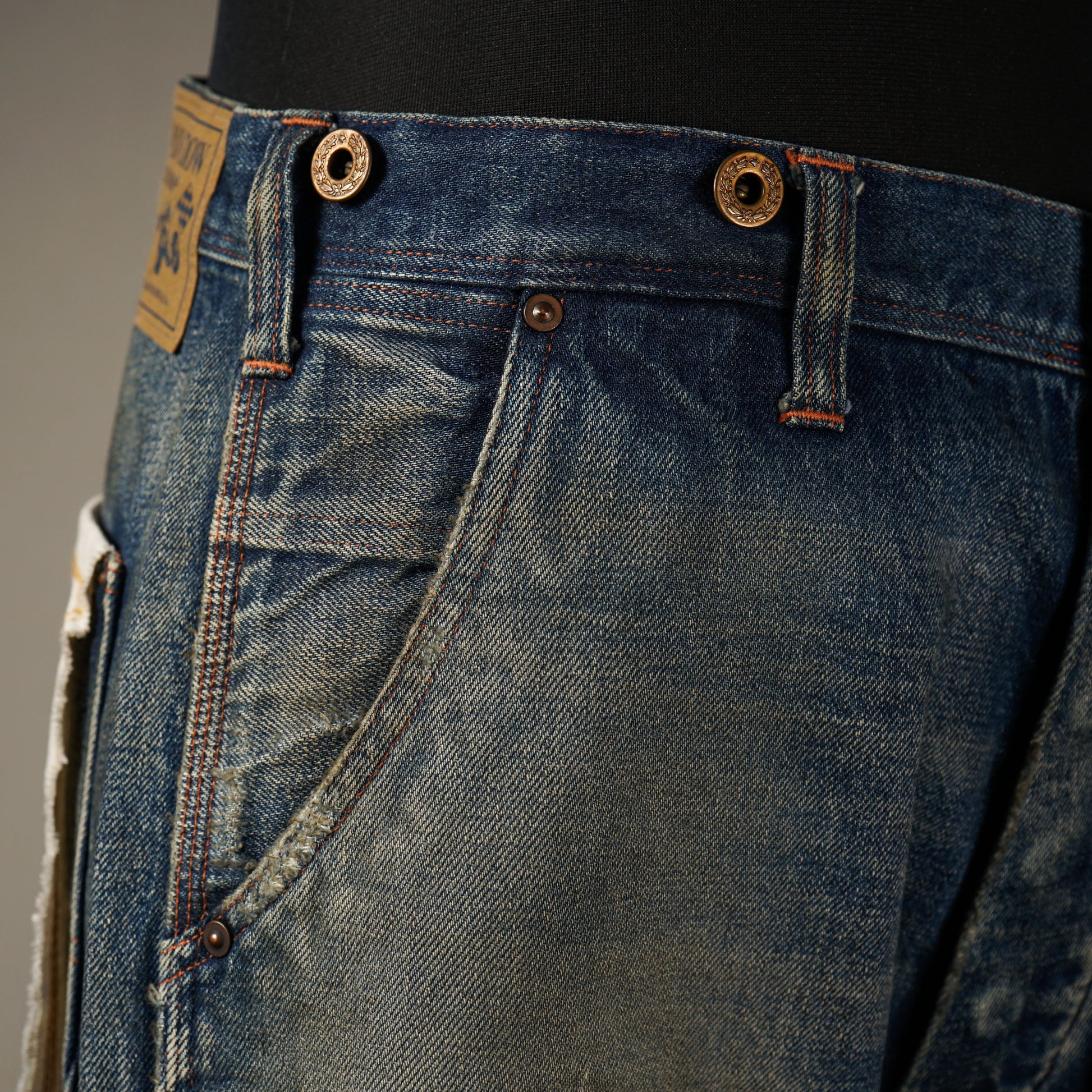 50年代のペインターパンツをベースにデザイン。 ヴィンテージの魂と現代の感性が融合した無骨でありながら洗練されたデニムは、古き良きアメリカンワークウェアをリスペクトし、時代を超えた男らしさを感じさせる仕上がり。履き込むごとに体に馴染み、自分だけの表情を持つ一本へと進化していく。