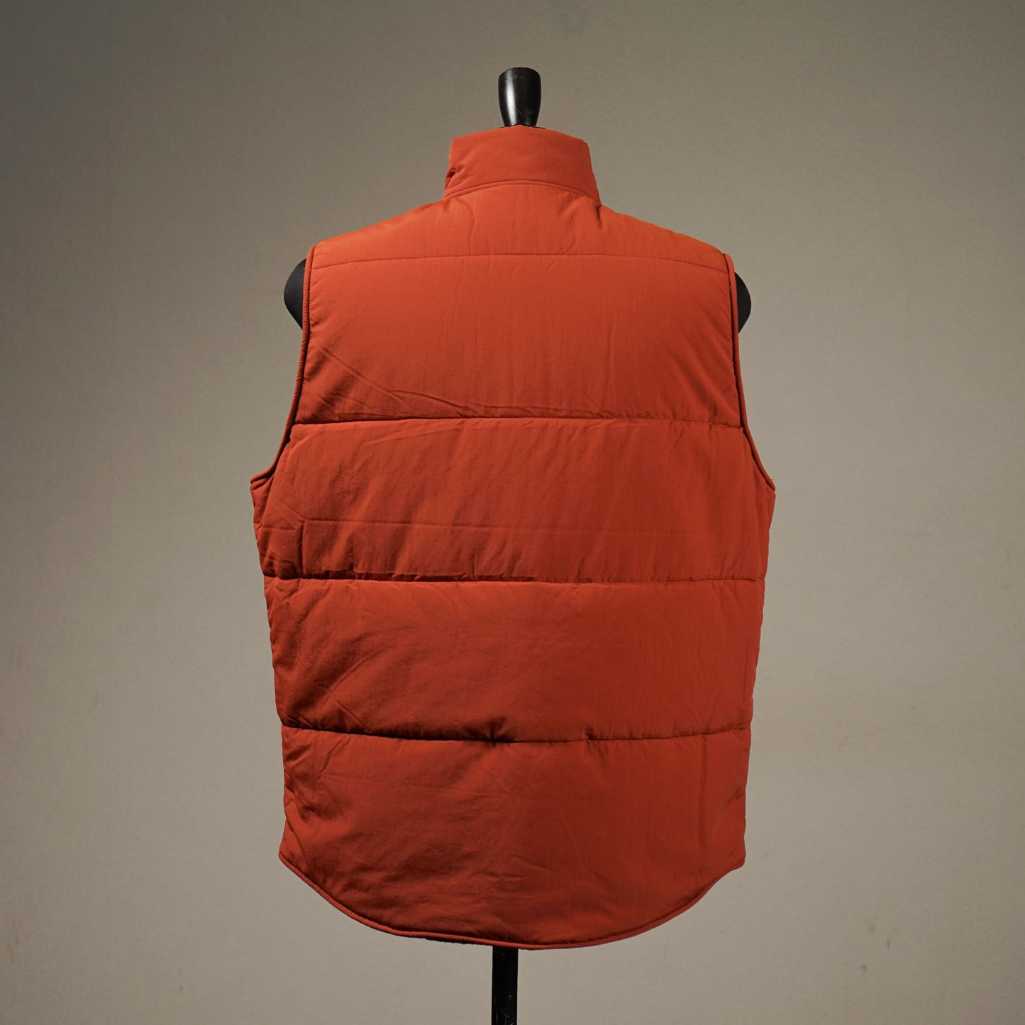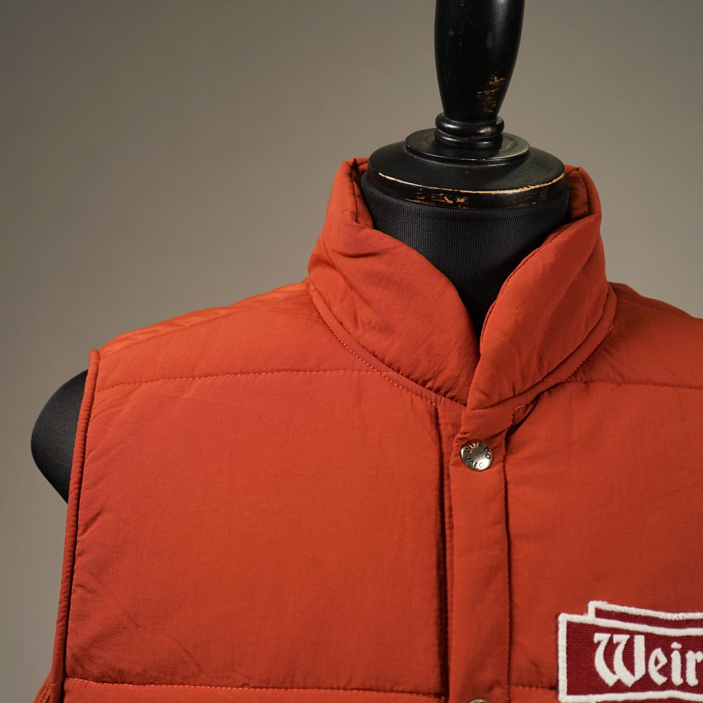 70~80年代のモーター系アイテムで多く見られた中綿ベストをベースにデザイン。 胸元のワッペン、オリジナルのスナップ釦がアクセントとなっている。