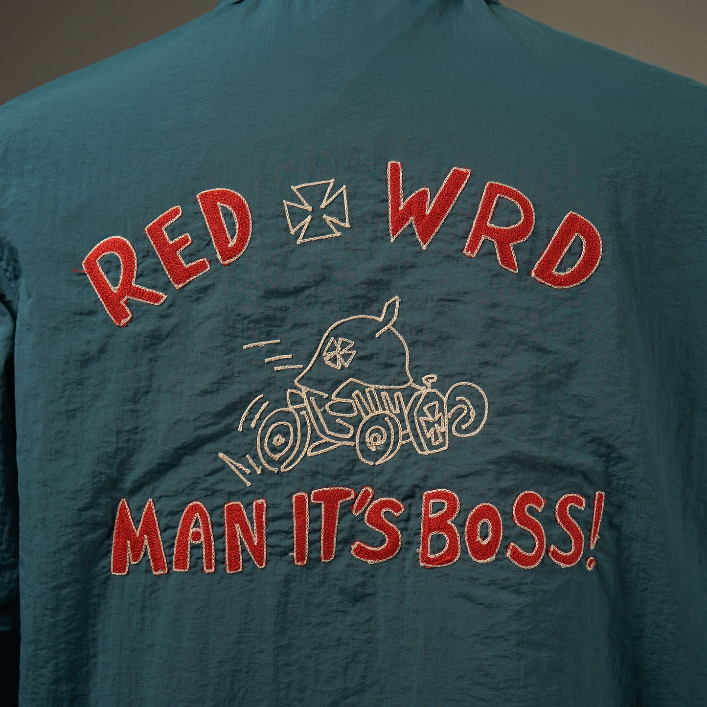 ヴィンテージのカークラブアイテムなどで見かけるコーチジャケットをイメージソースに、WEIRDOらしいおもちゃをテーマにしたグラフィックデザインをチェーン刺繍で施したコーチジャケット。