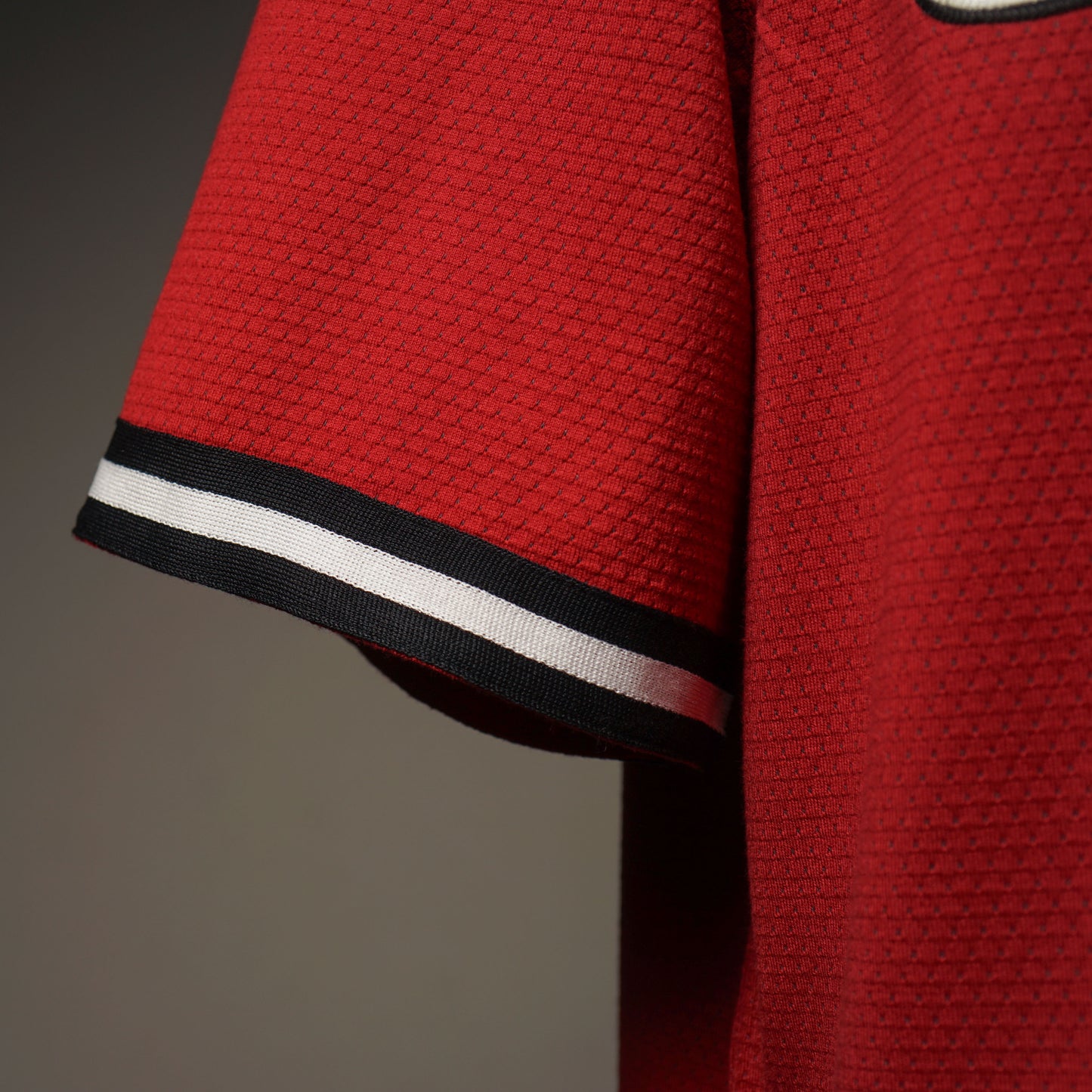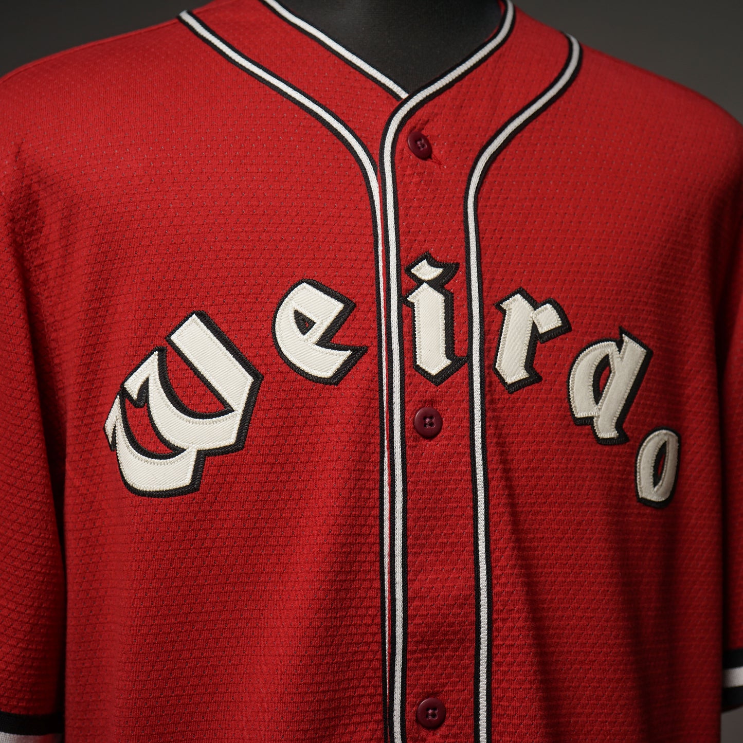 フロントのロゴや袖口、前立てのラインテープがアクセントのメッシュベースボールシャツです。