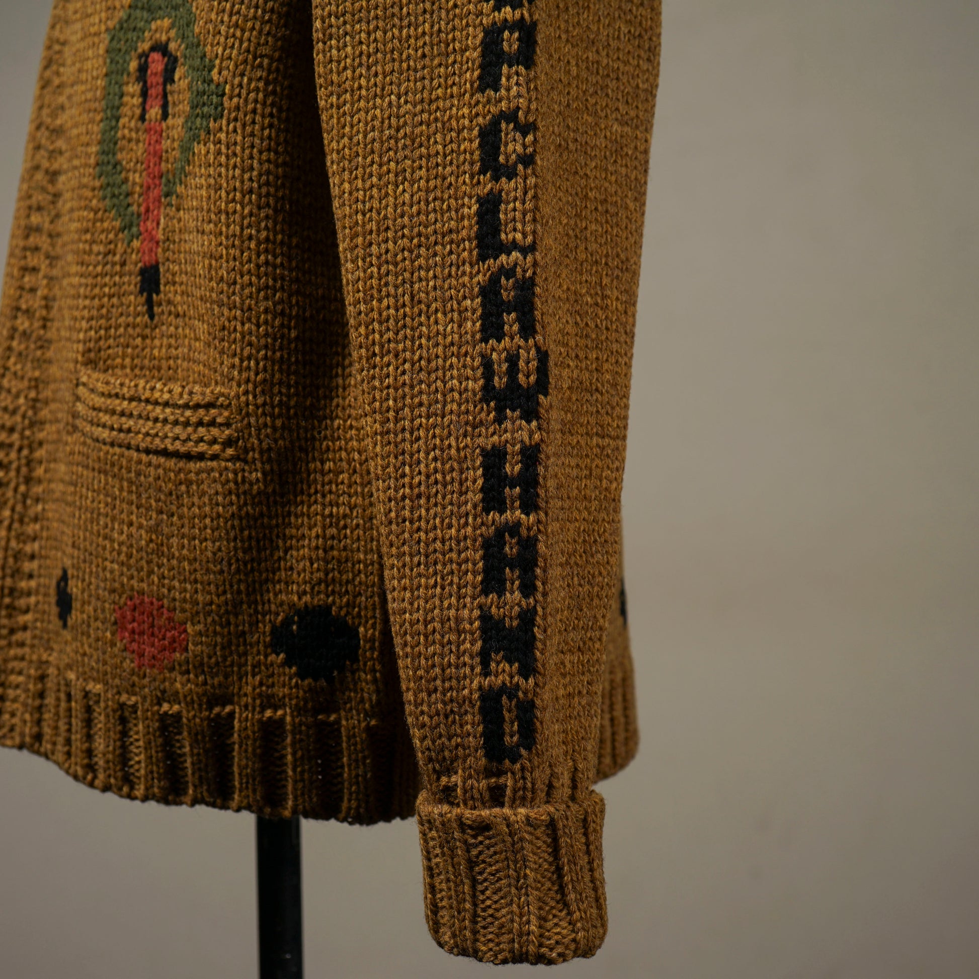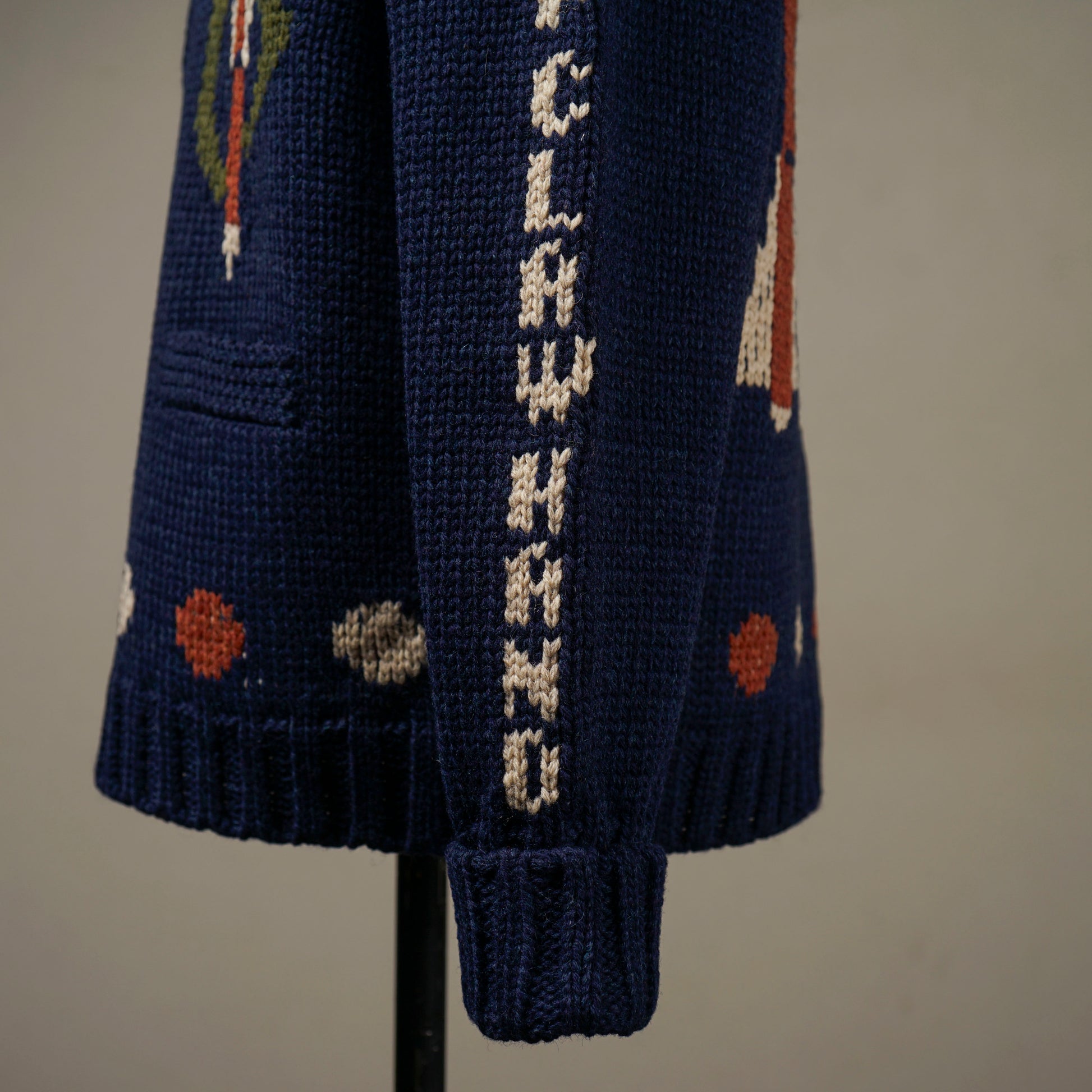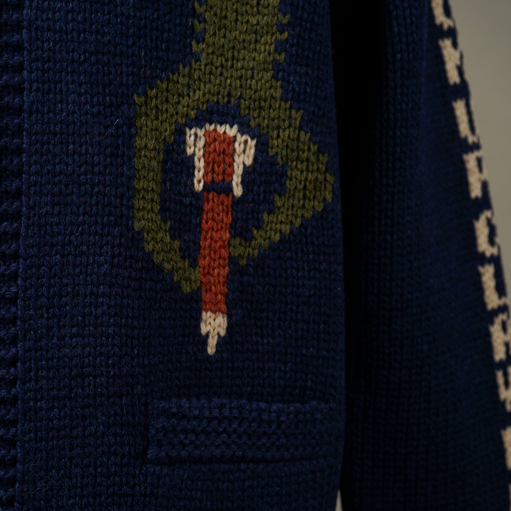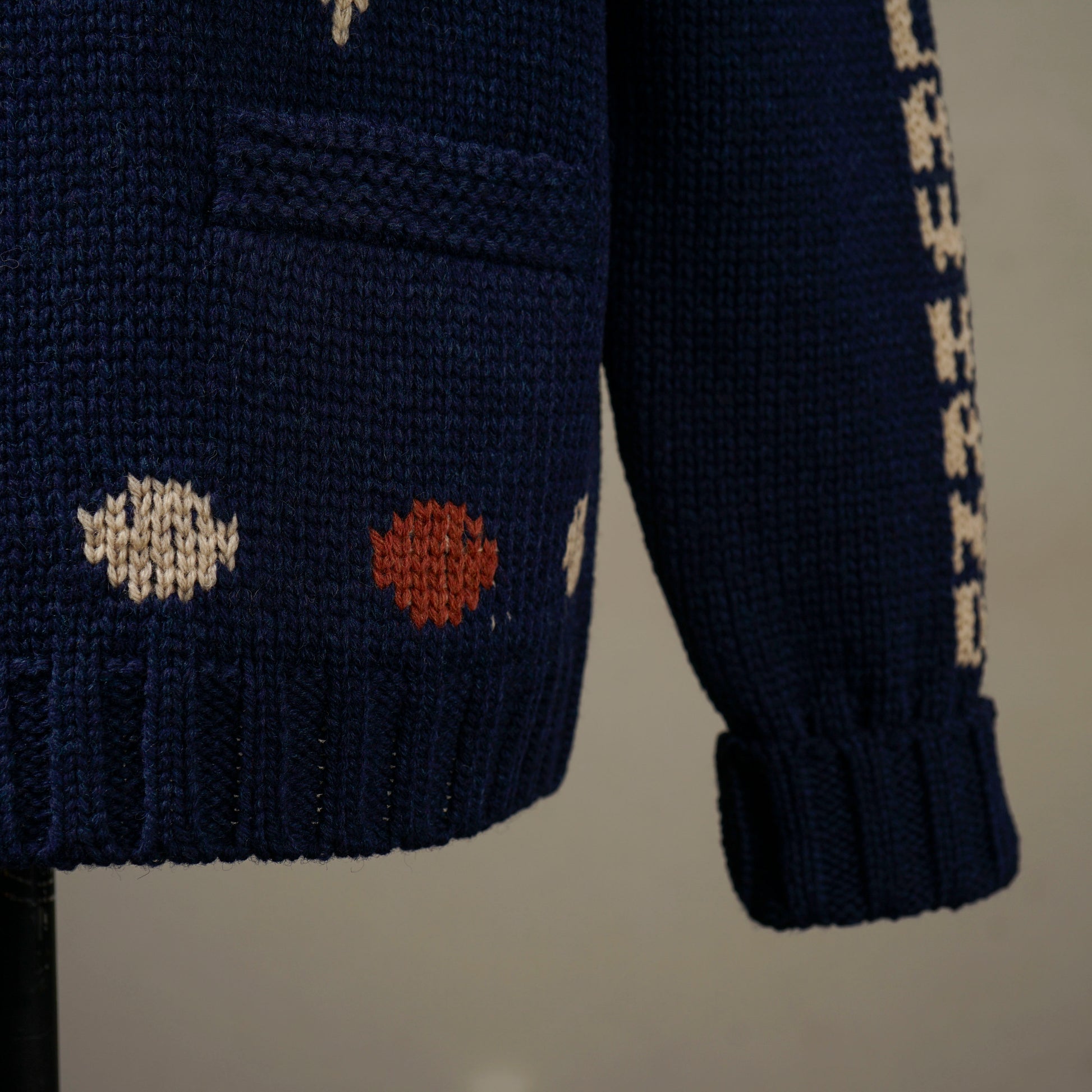 シェットランド諸島に生息する羊からとれるショットランドウールを使用。希少な3Gインターシャ編みの機械で柄を表現しております。