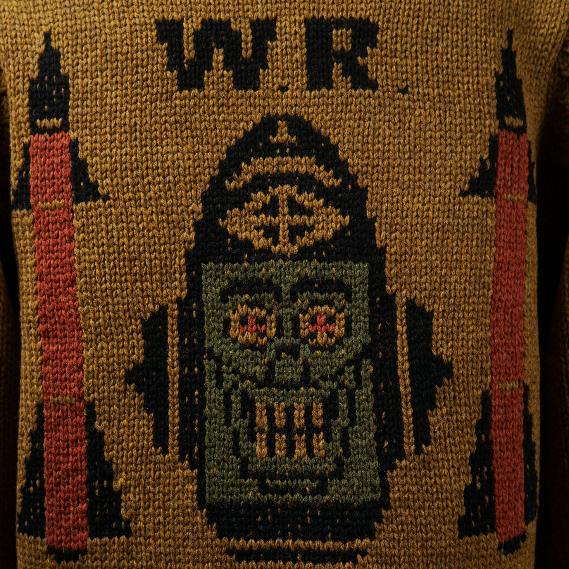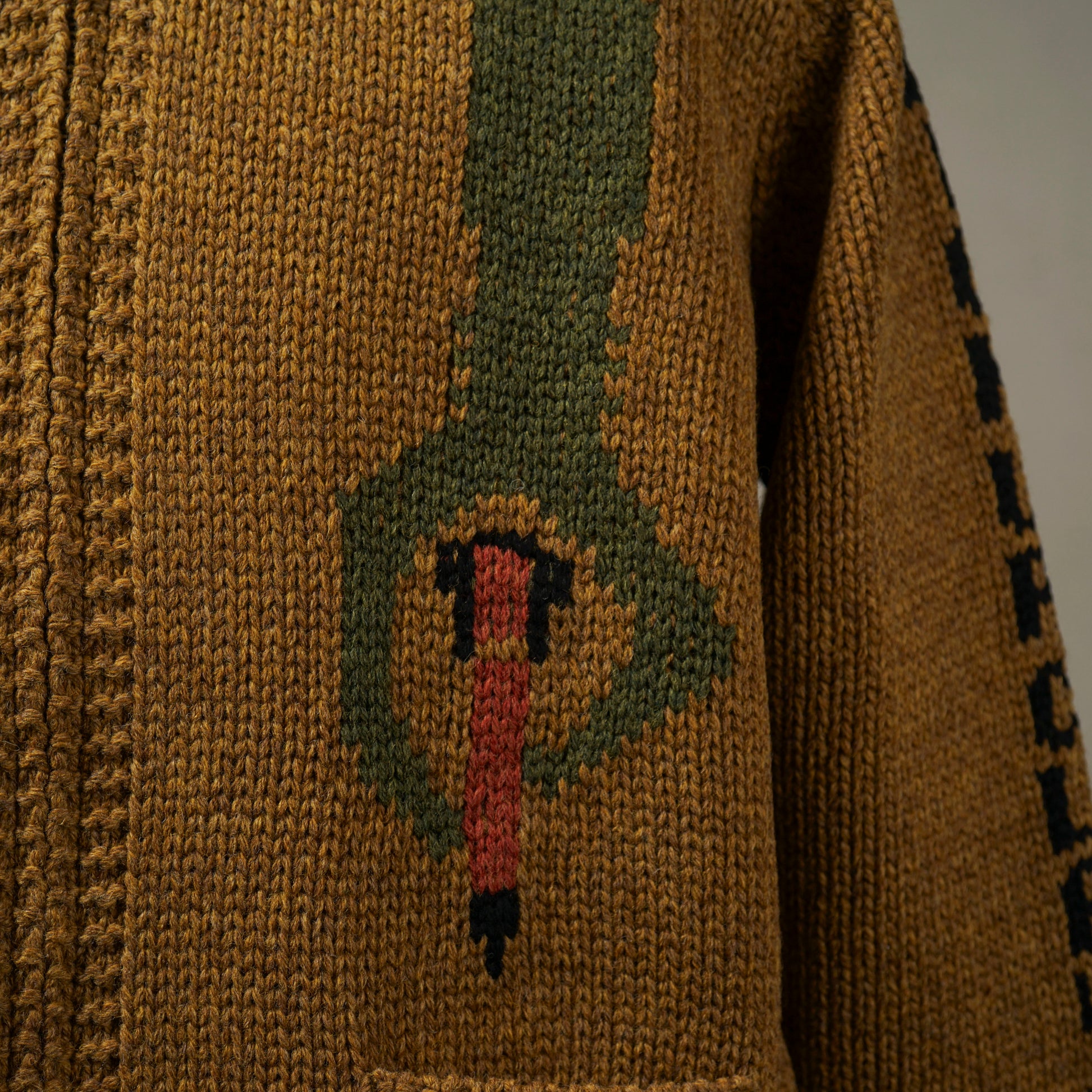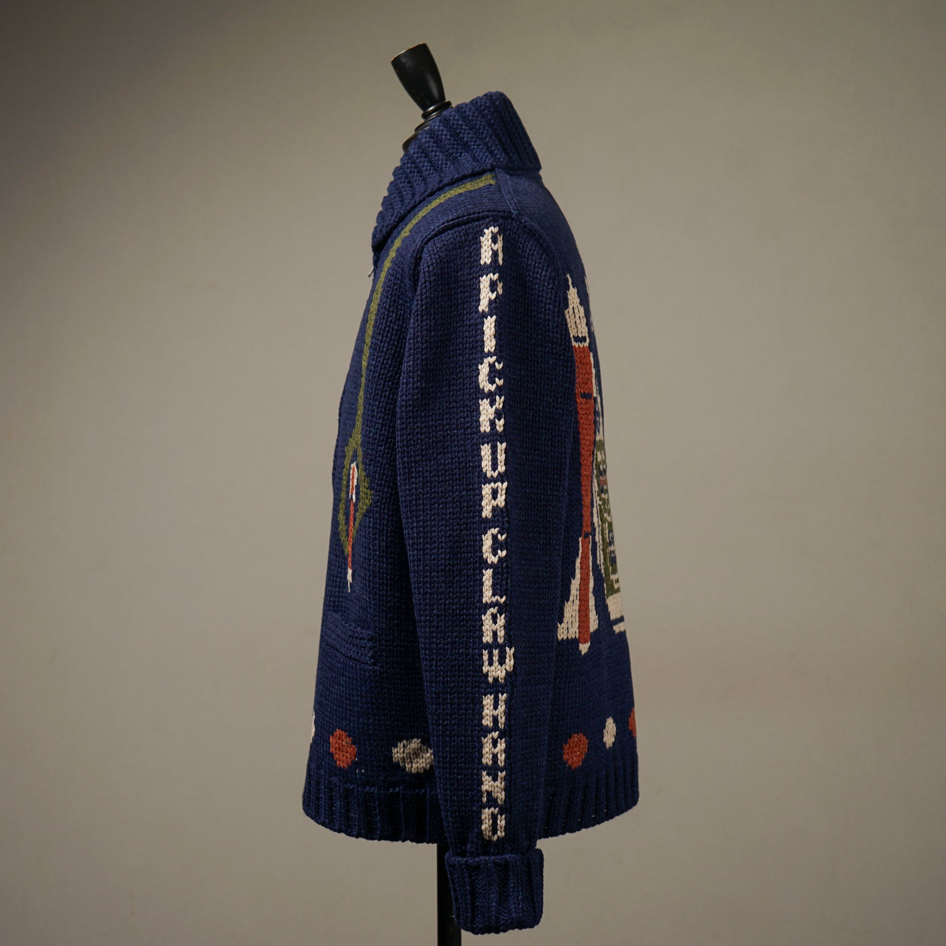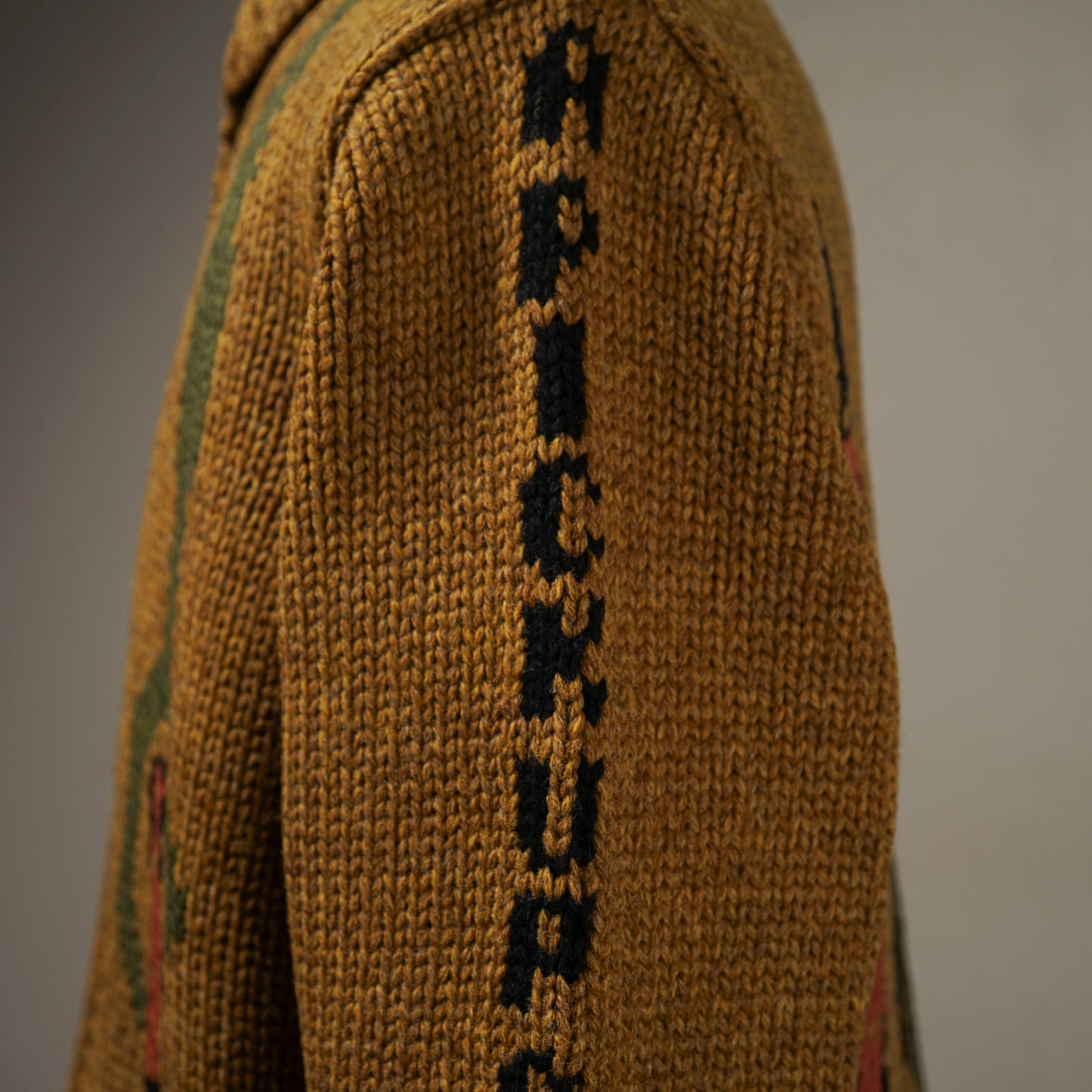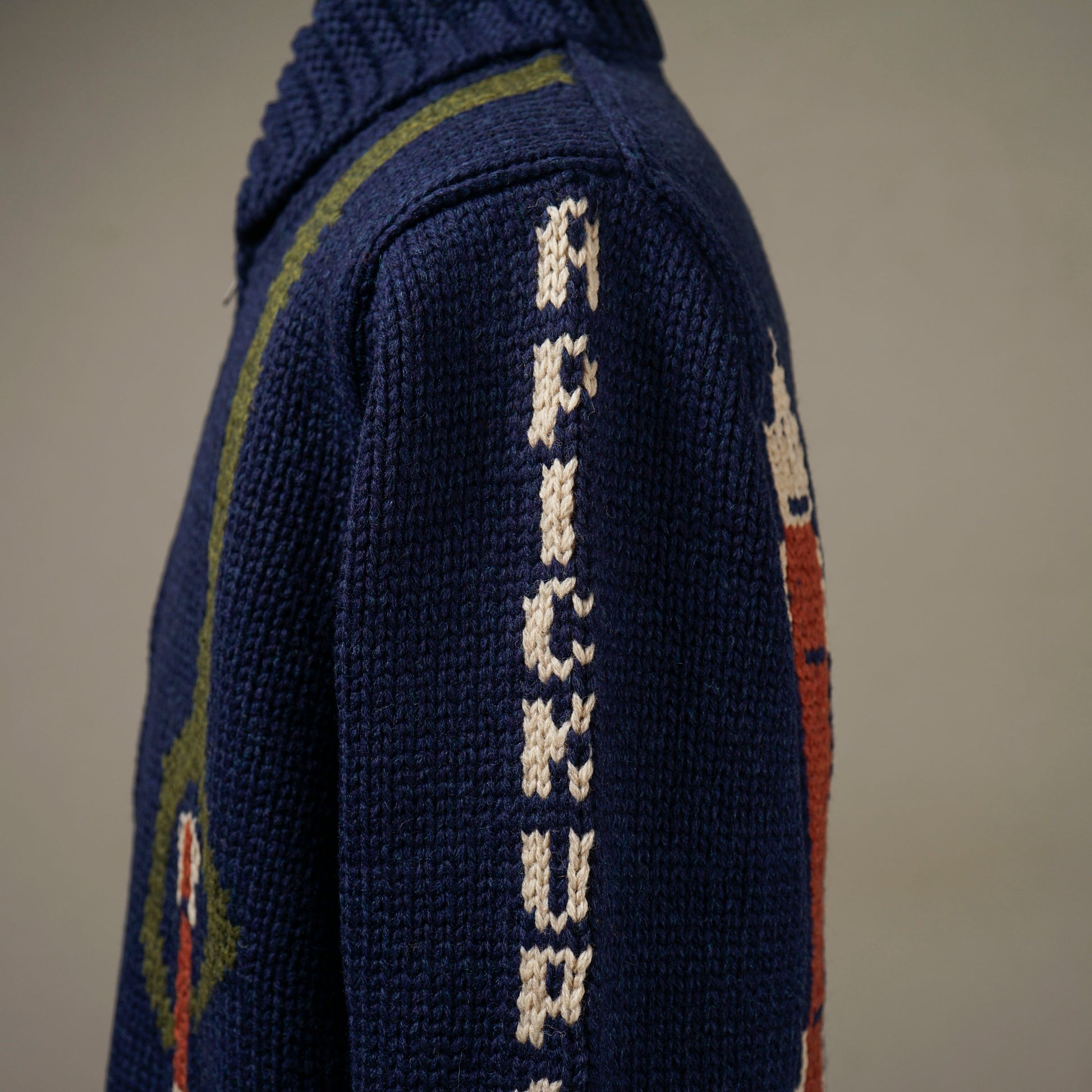 シェットランド諸島に生息する羊からとれるショットランドウールを使用。希少な3Gインターシャ編みの機械で柄を表現しております。