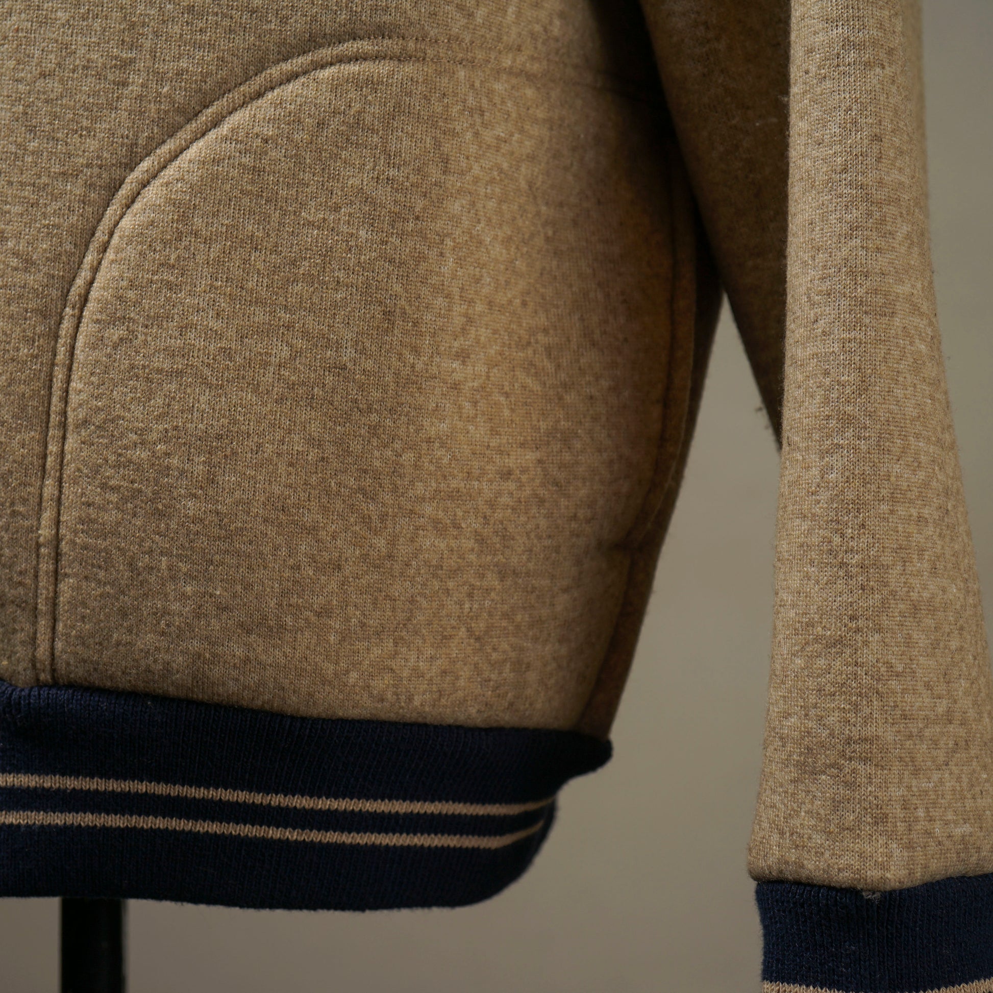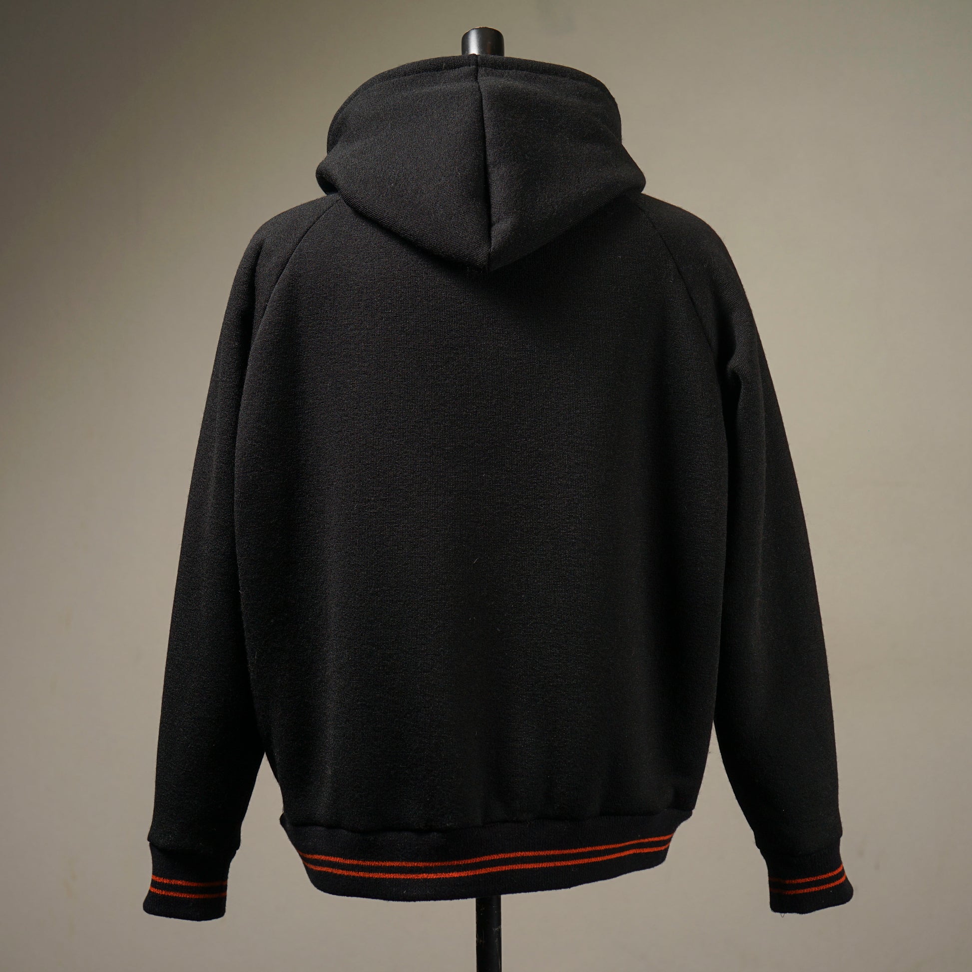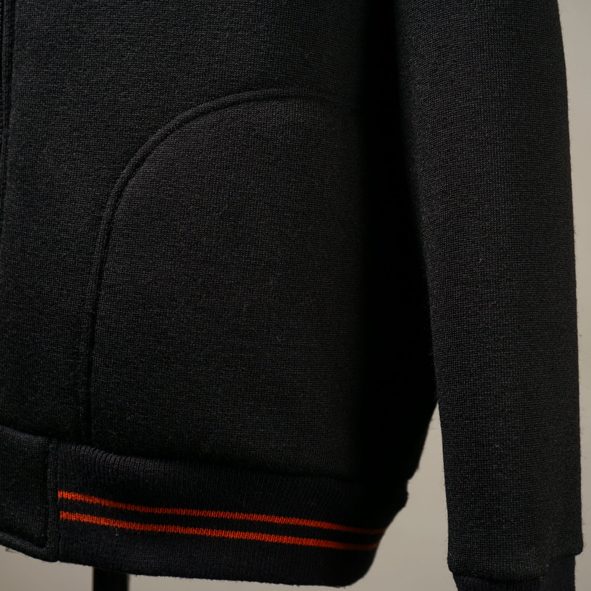 ディテール 首元の防寒性を高めるためにフードまで伸ばしたファスナーと、アクセントにもなっているライン入りのリブが特徴で、胸元にはロゴ刺繍が落とし込まれている。