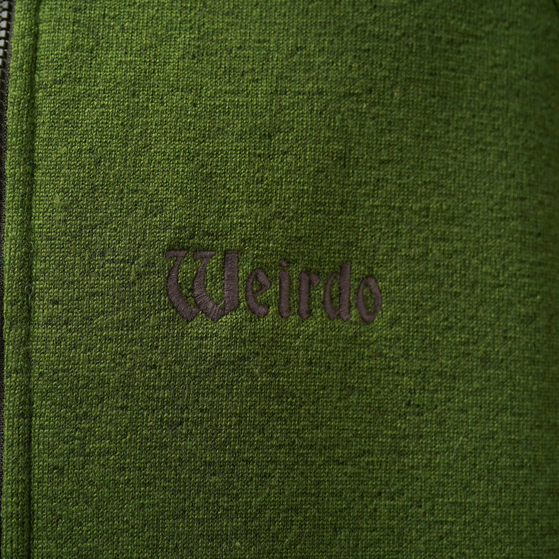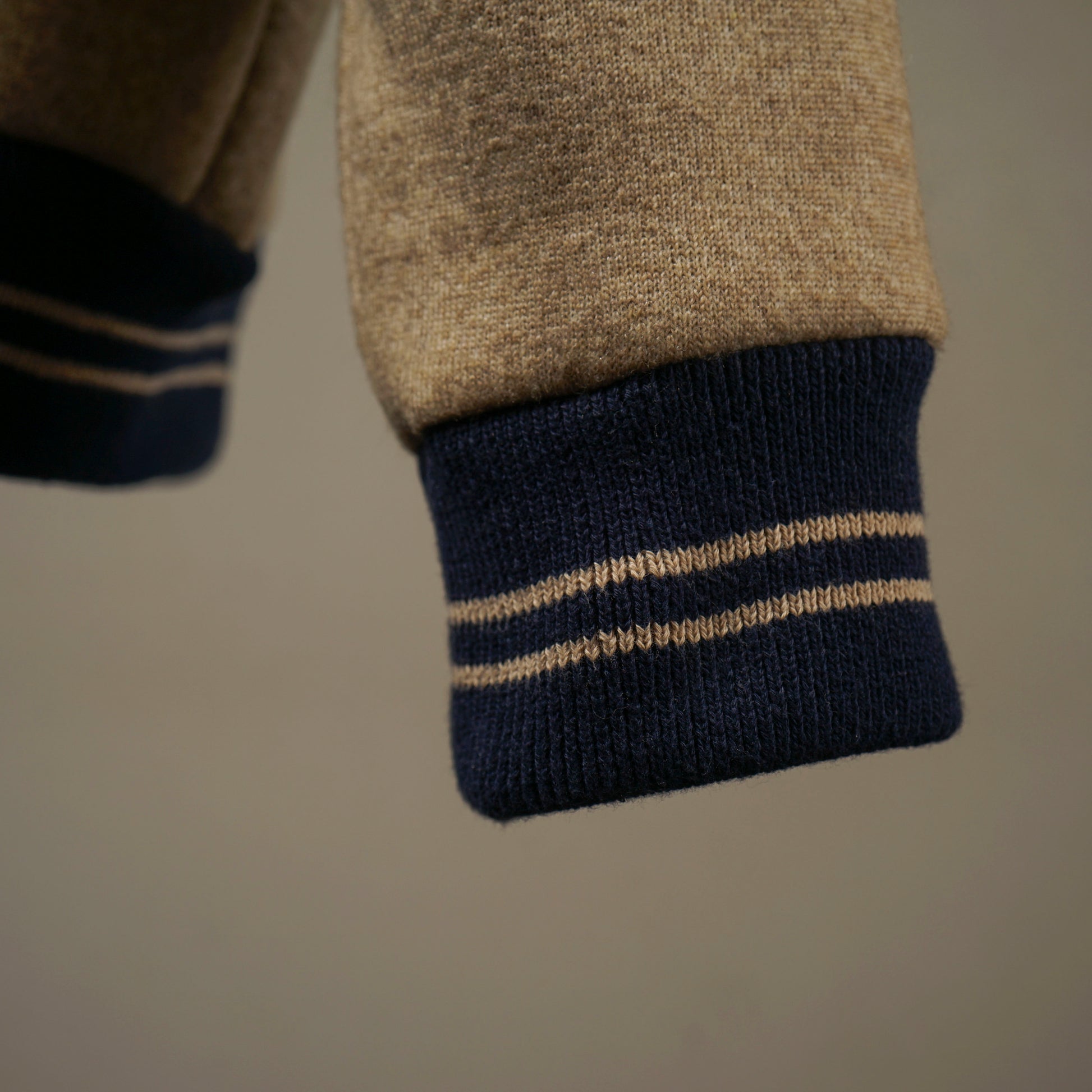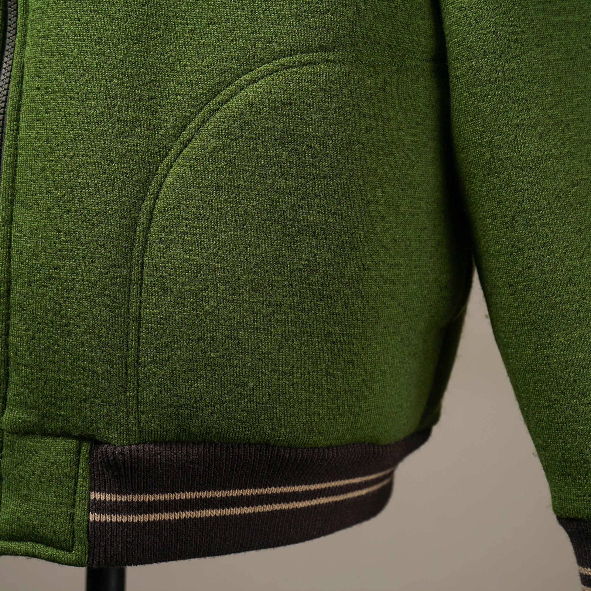 ディテール 首元の防寒性を高めるためにフードまで伸ばしたファスナーと、アクセントにもなっているライン入りのリブが特徴で、胸元にはロゴ刺繍が落とし込まれている。