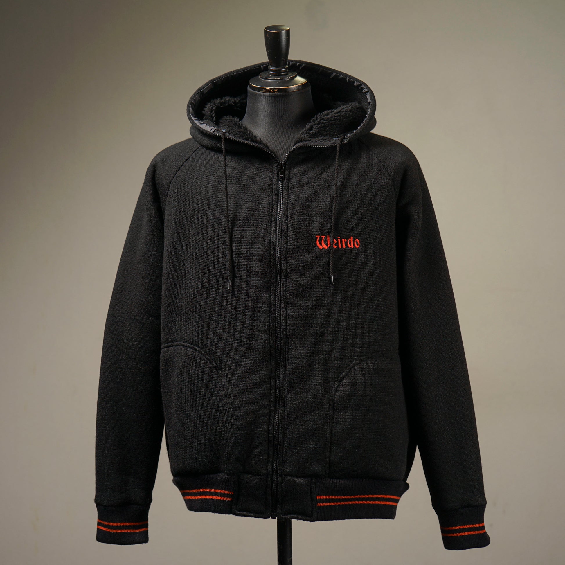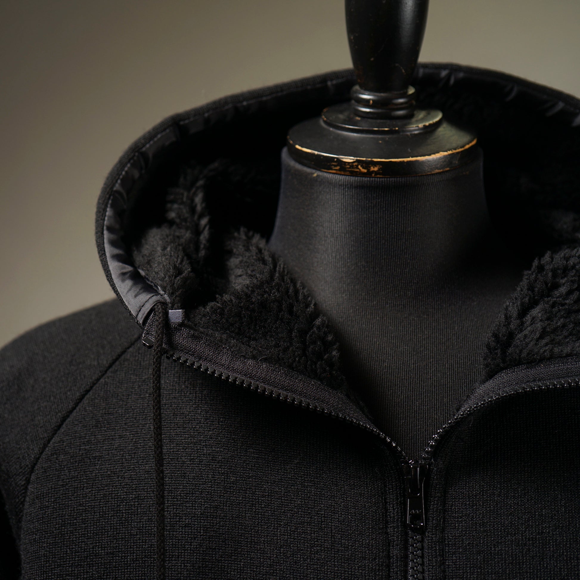 軽さと膨らみ、上質な柔らかさを兼ね備えた発色の良いボア素材を採用し、胸元に配されたモーターカルチャーを感じさせるグラフィックが特徴となっている。