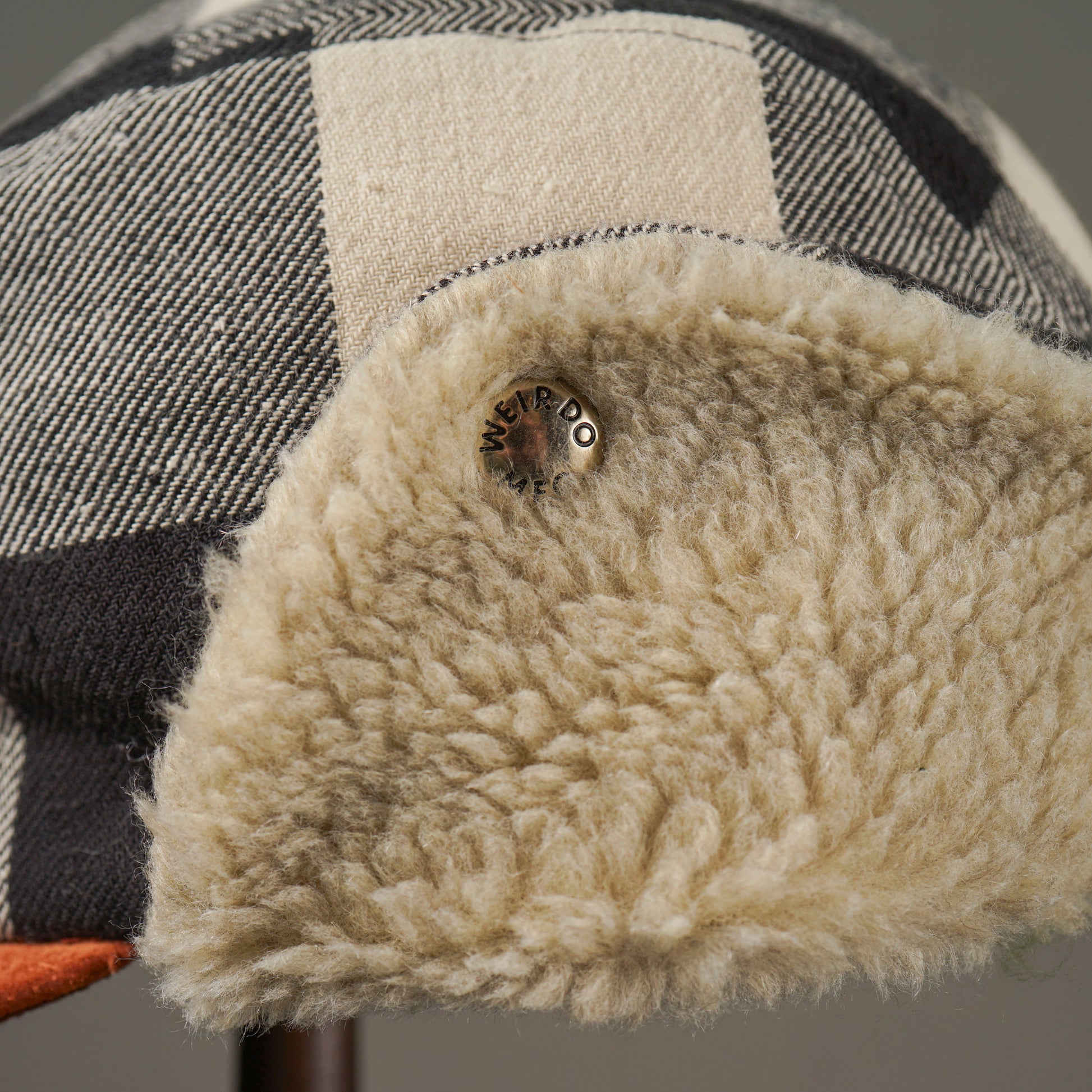 古い紡績機で引いた糸を使用することでナチュラルなムラ感を感じる素材、甘めに織り上げた後、洗いをかけることで膨らみのある風合に仕上げたチェック柄を使用。ジェットキャップにボアの耳当て付け、裏地に中綿キルトをあてたトラッパーキャップ。タウンユースもちろん、アウトドアシーンでも使用頂けます。