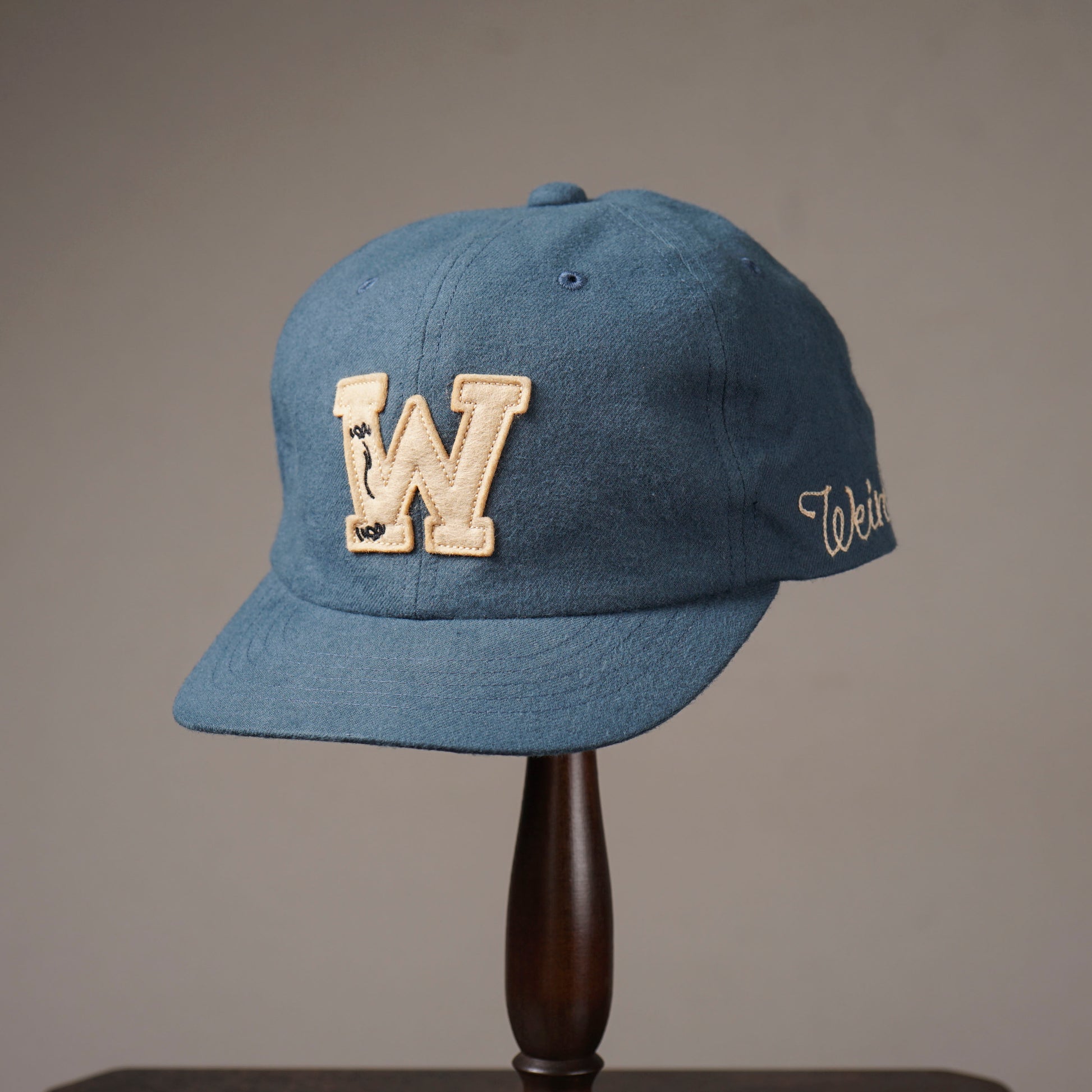 クラシカルな雰囲気の20番手ネル生地のBB CAP、フロントにブランドロゴをフェルト刺繍で配し、ツバ裏の配色生地や革スベリもヴィンテージを思わす仕様となっています。