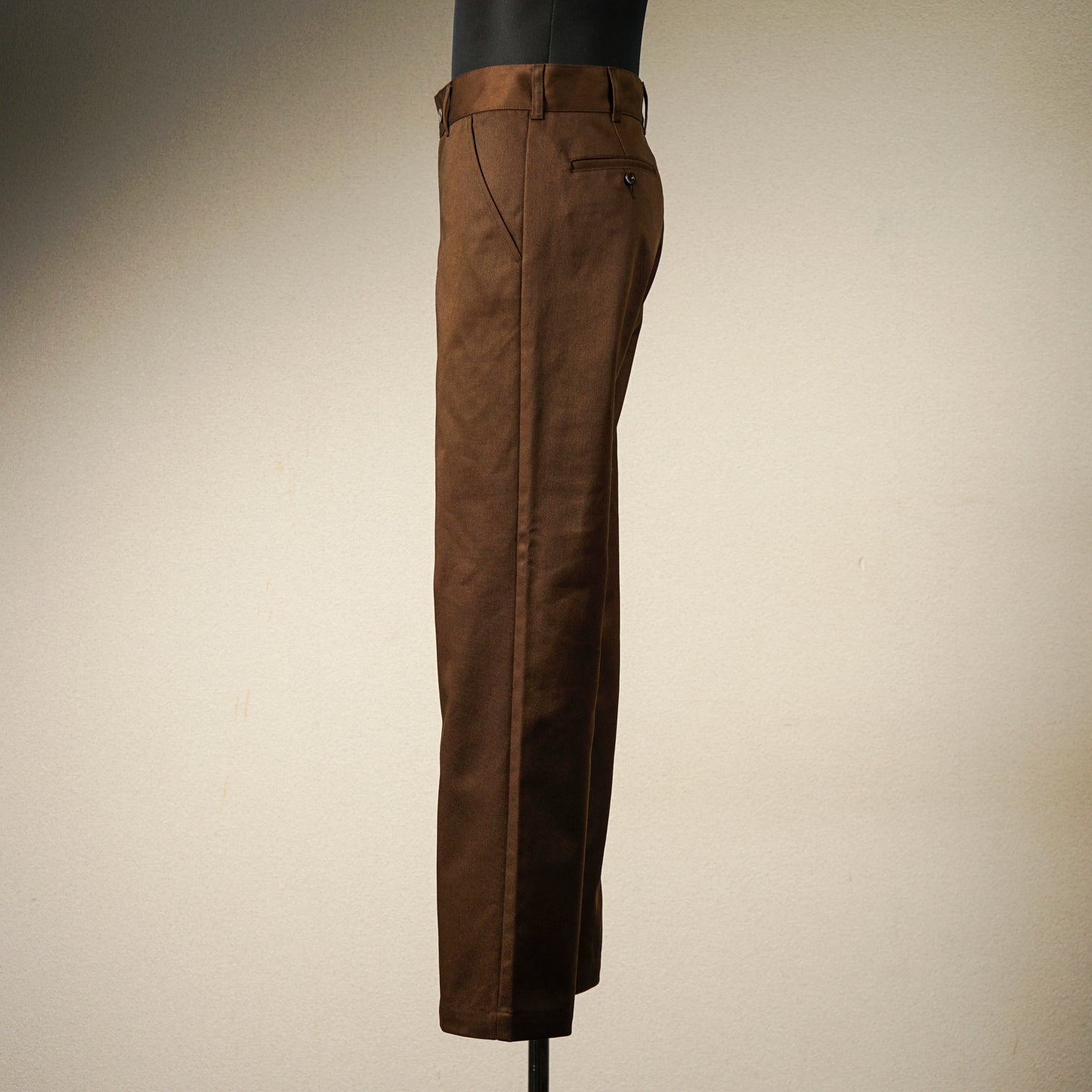 全体的にゆったりとしたシルエットながら、裾に向かって軽くテーパードが施されており、リラックス感がありながらもだらしなくならないバランスが秀逸。